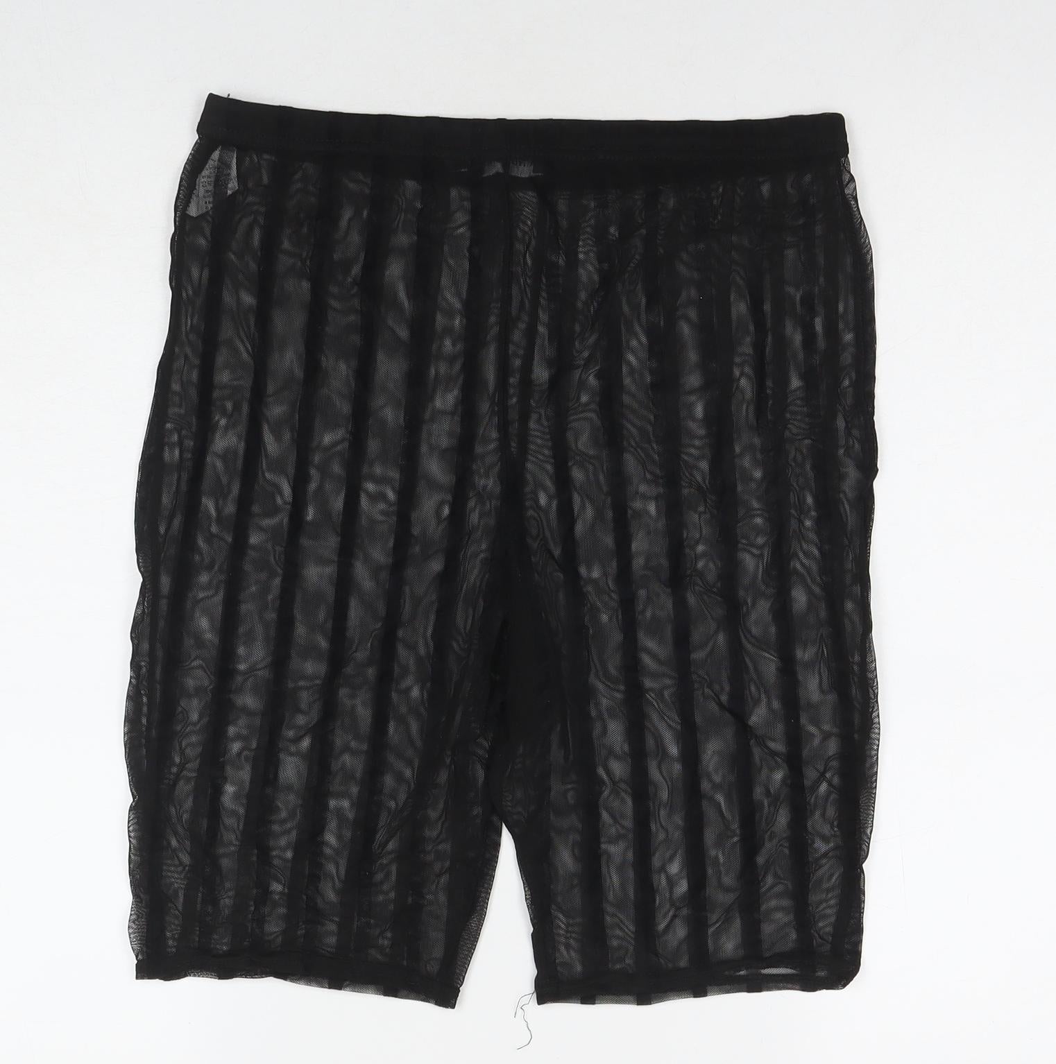 PRETTYLITTLETHING Womens Black Striped Polyester Skimmer Shorts Size 16 L10 in Regular Pull On
