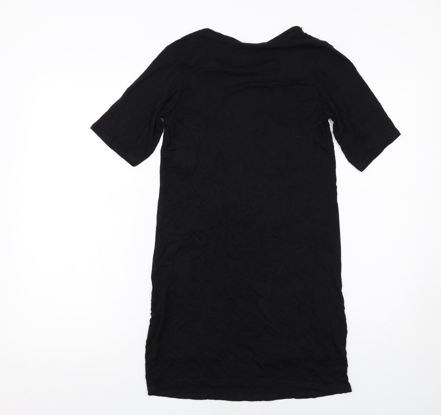 PRETTYLITTLETHING Womens Black Viscose A-Line Size 6 Round Neck Pullover