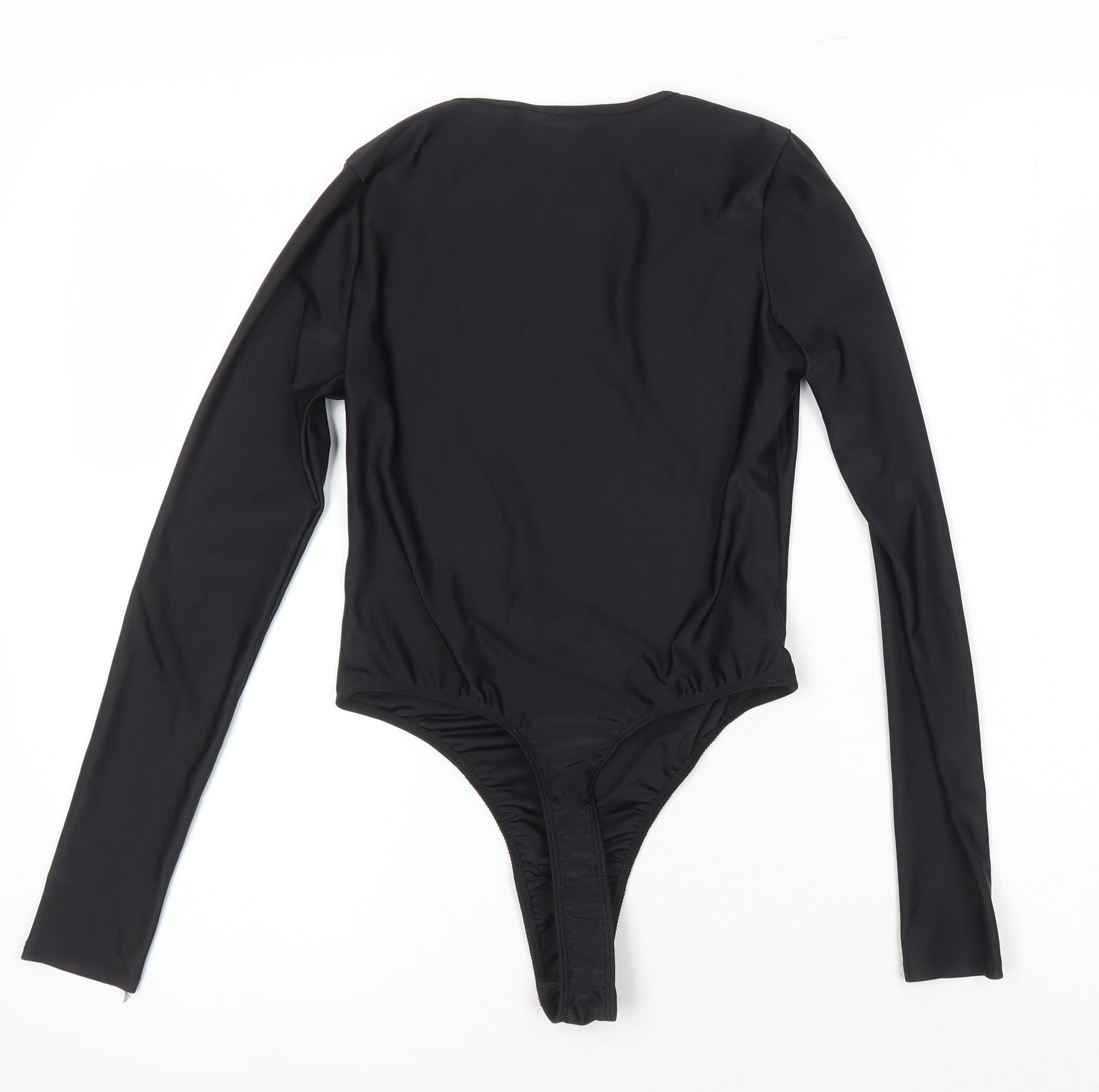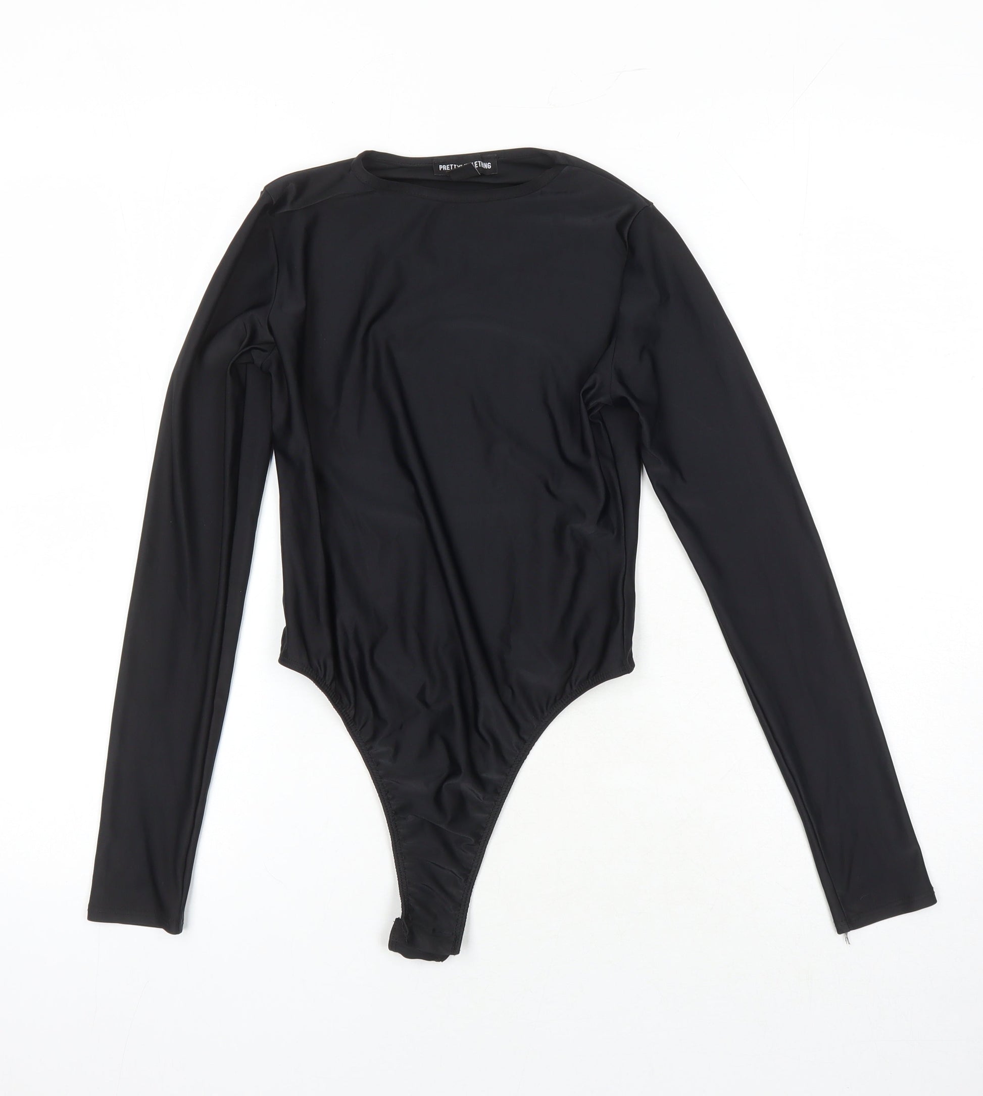 PRETTYLITTLETHING Womens Black Viscose Blend Bodysuit One-Piece Size 8