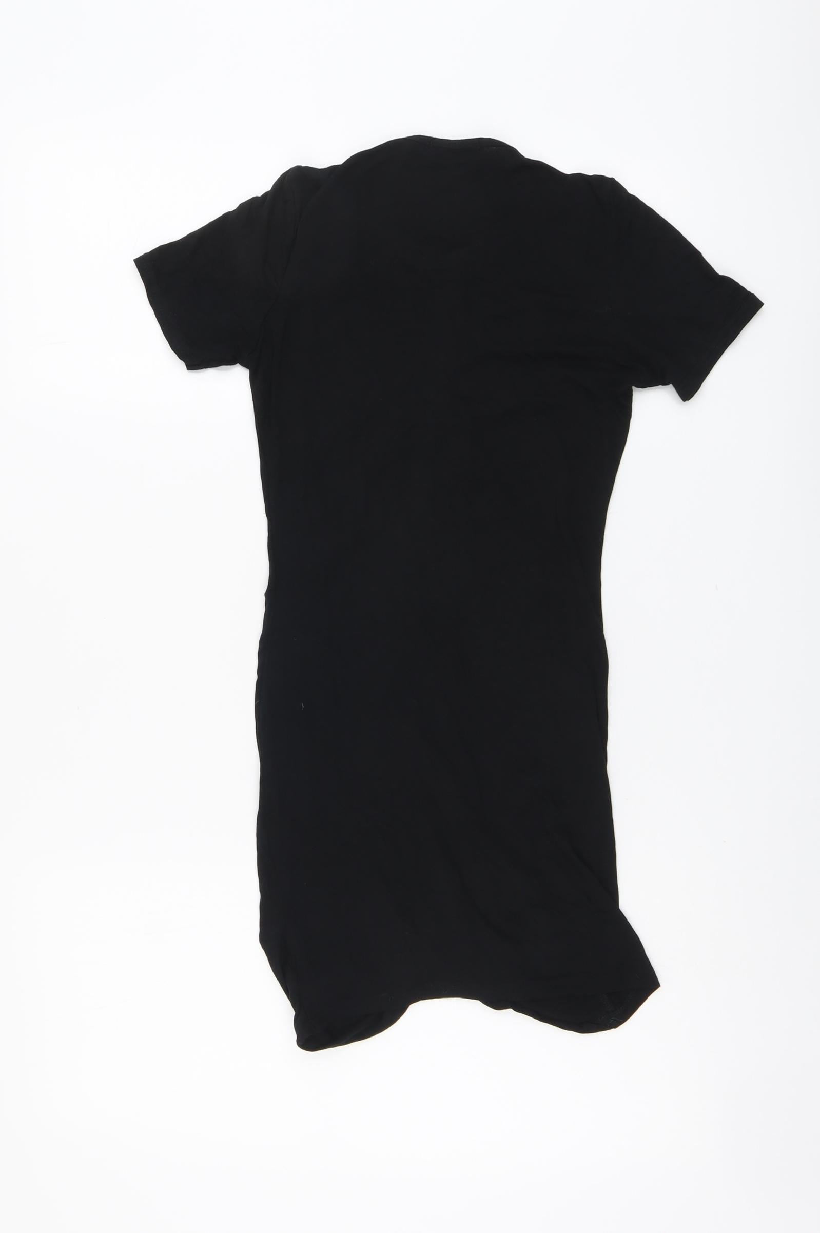 PRETTYLITTLETHING Womens Black Viscose Bodycon Size 4 V-Neck Pullover