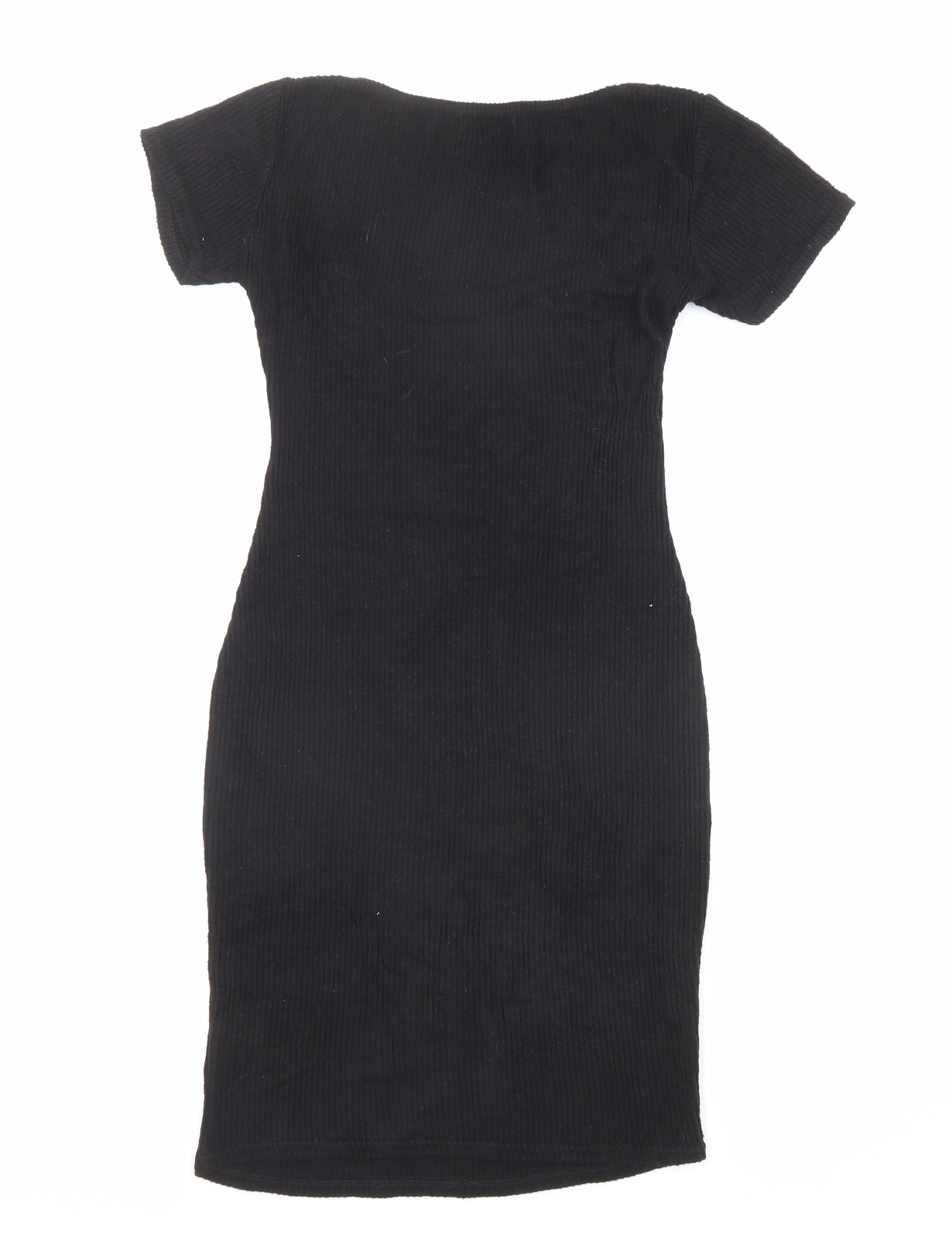 PRETTYLITTLETHING Womens Black Viscose Bodycon Size 8 Scoop Neck Pullover