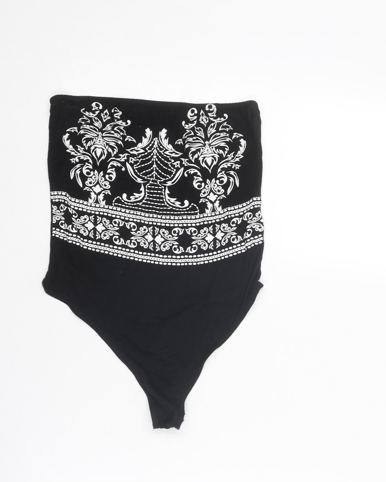 PRETTYLITTLETHING Womens Black Viscose Bodysuit One-Piece Size 8 Snap
