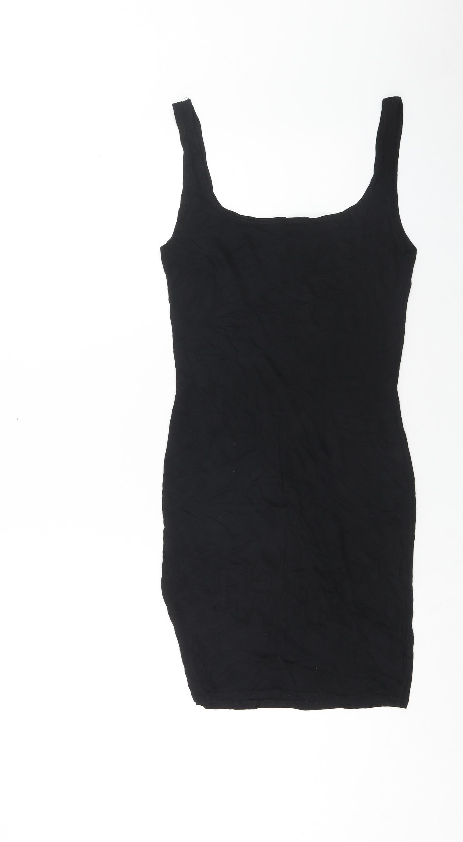 PRETTYLITTLETHING Womens Black Viscose Tank Dress Size 10 Scoop Neck Pullover