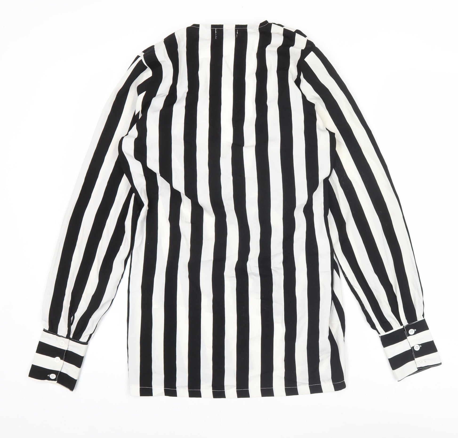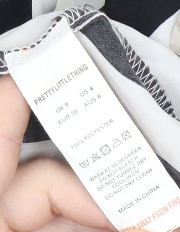 PrettyLittleThing Womens Black White Striped Tie Blouse Size 8
