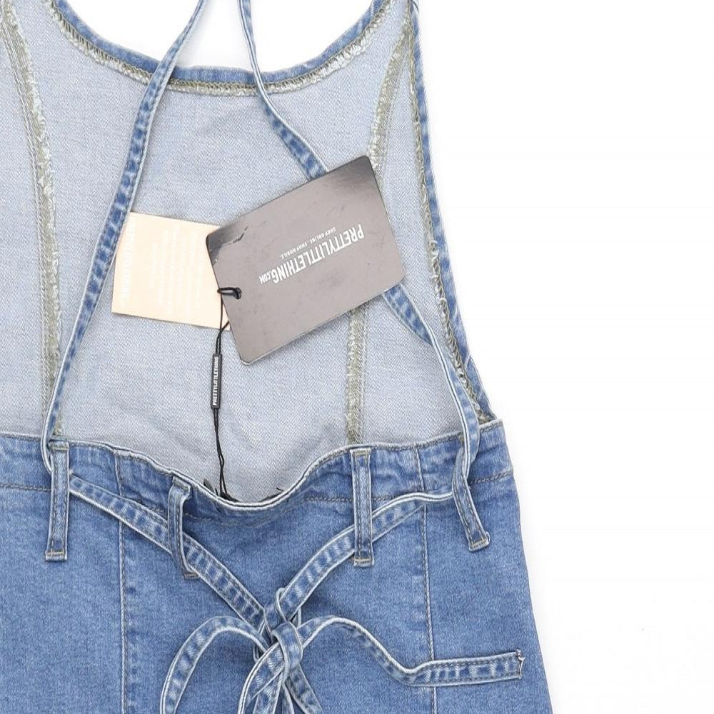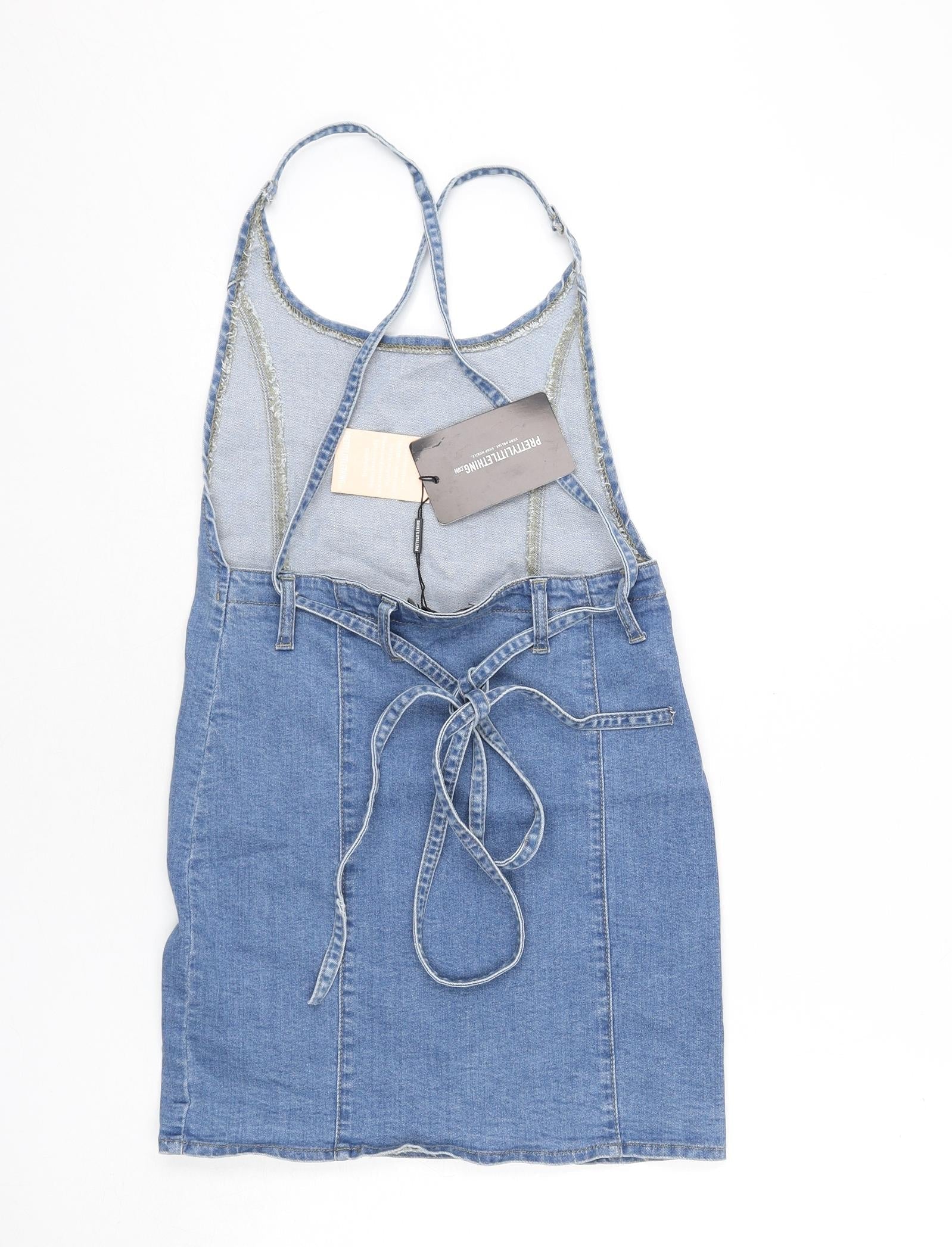 PRETTYLITTLETHING Womens Blue Cotton Bodycon Size 6 Scoop Neck Tie