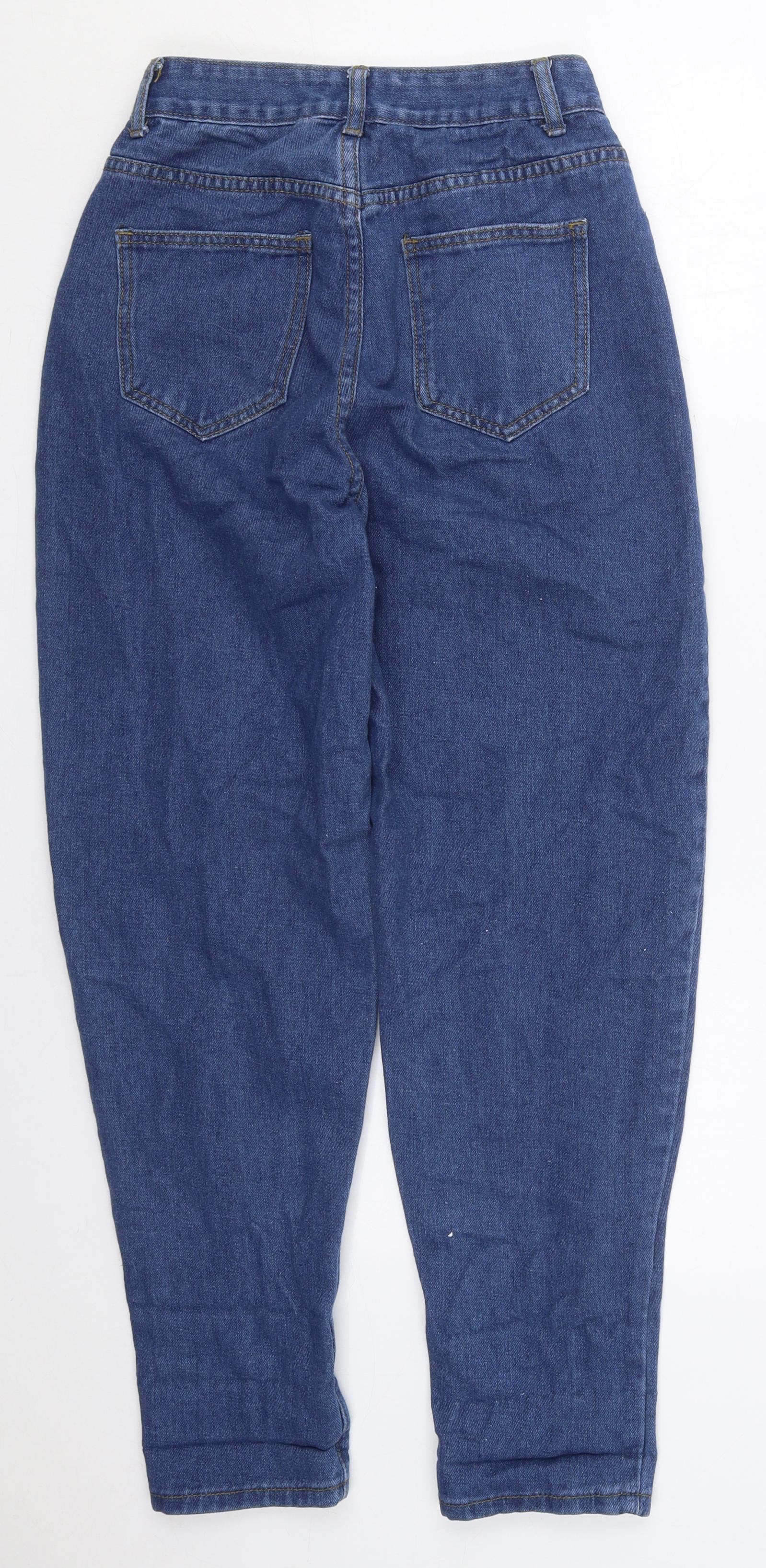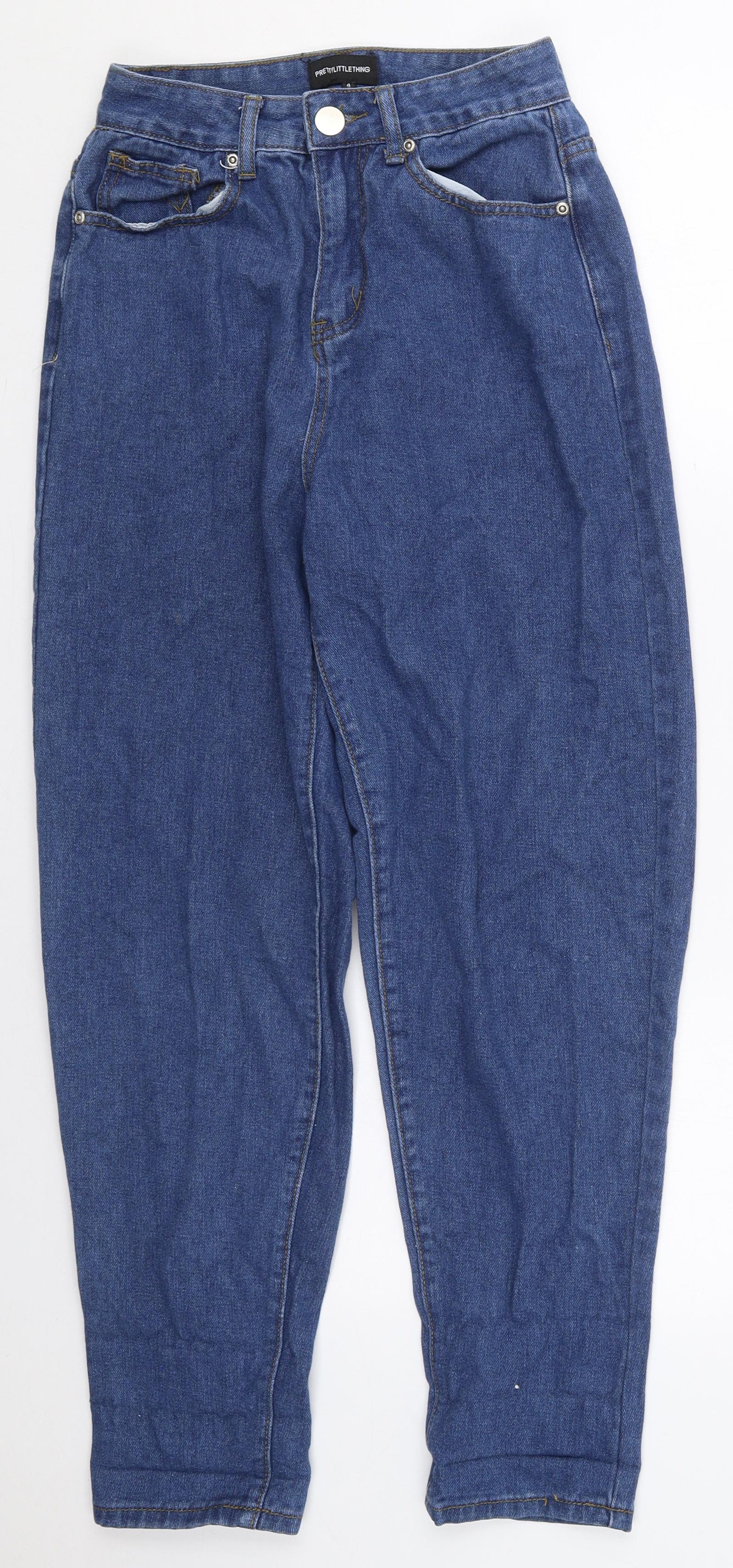 PRETTYLITTLETHING Womens Blue Cotton Mom Jeans Size 4 L28 in Regular Button