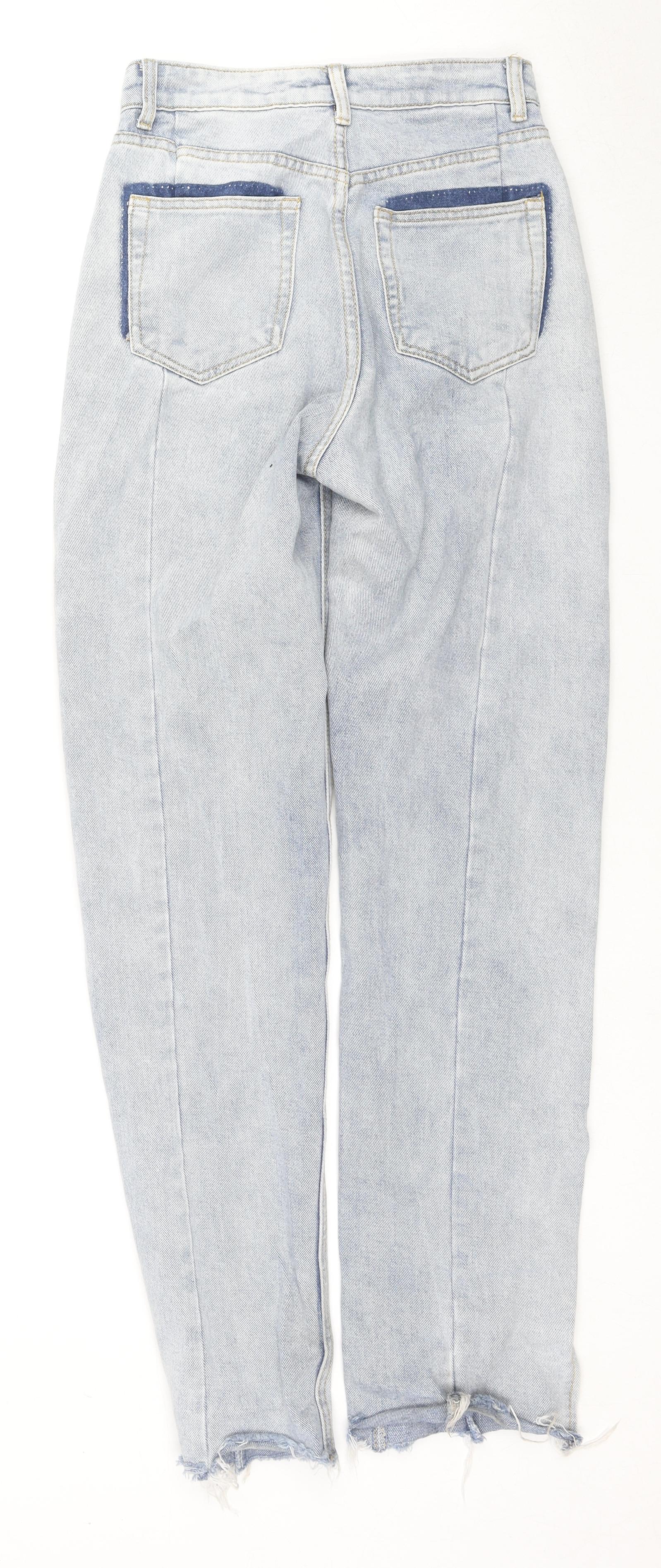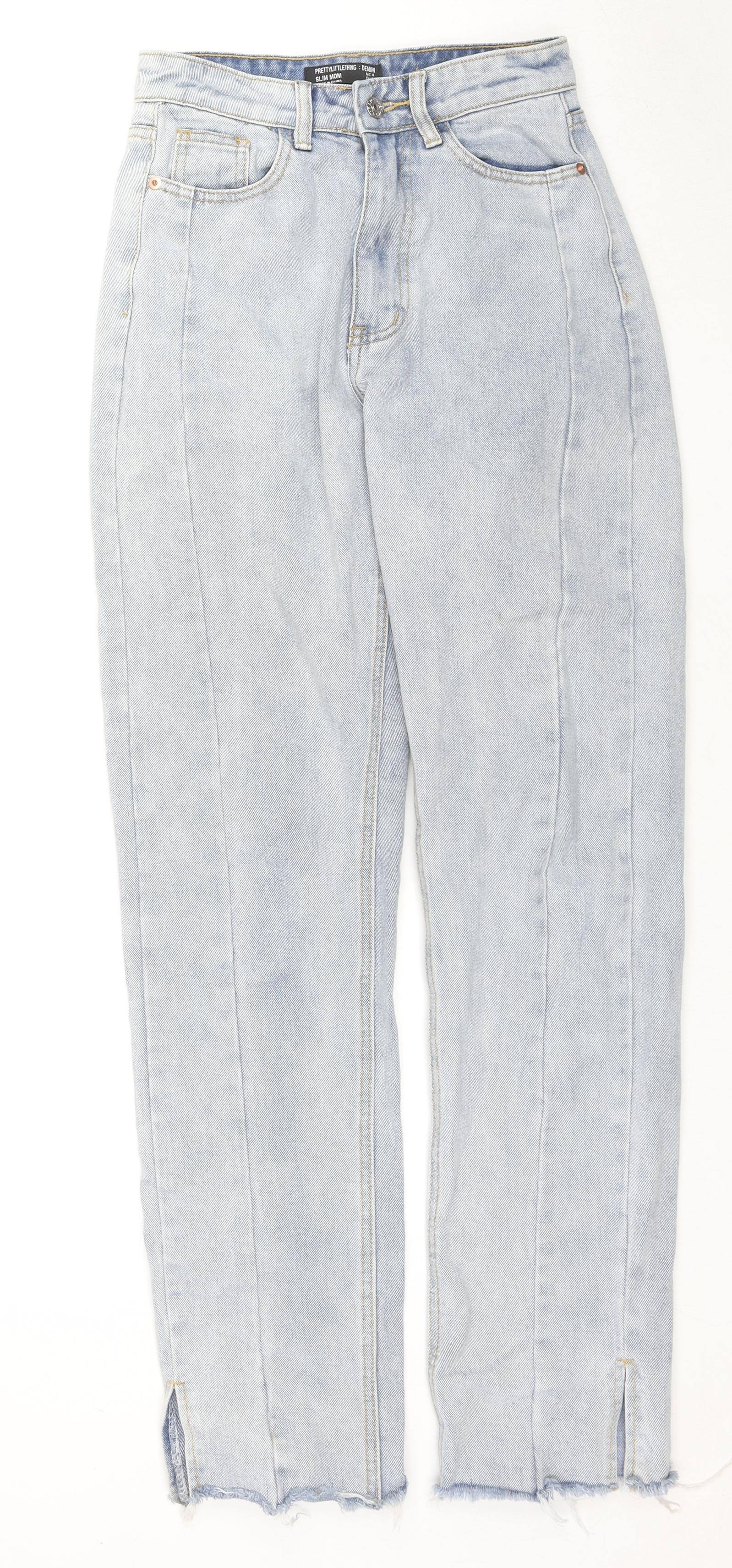 PRETTYLITTLETHING Womens Blue Cotton Mom Jeans Size 4 L32 in Regular Zip