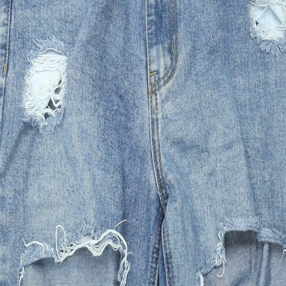 PRETTYLITTLETHING Womens Blue Cotton Straight Jeans Size 10 L29.5 in Regular Zip