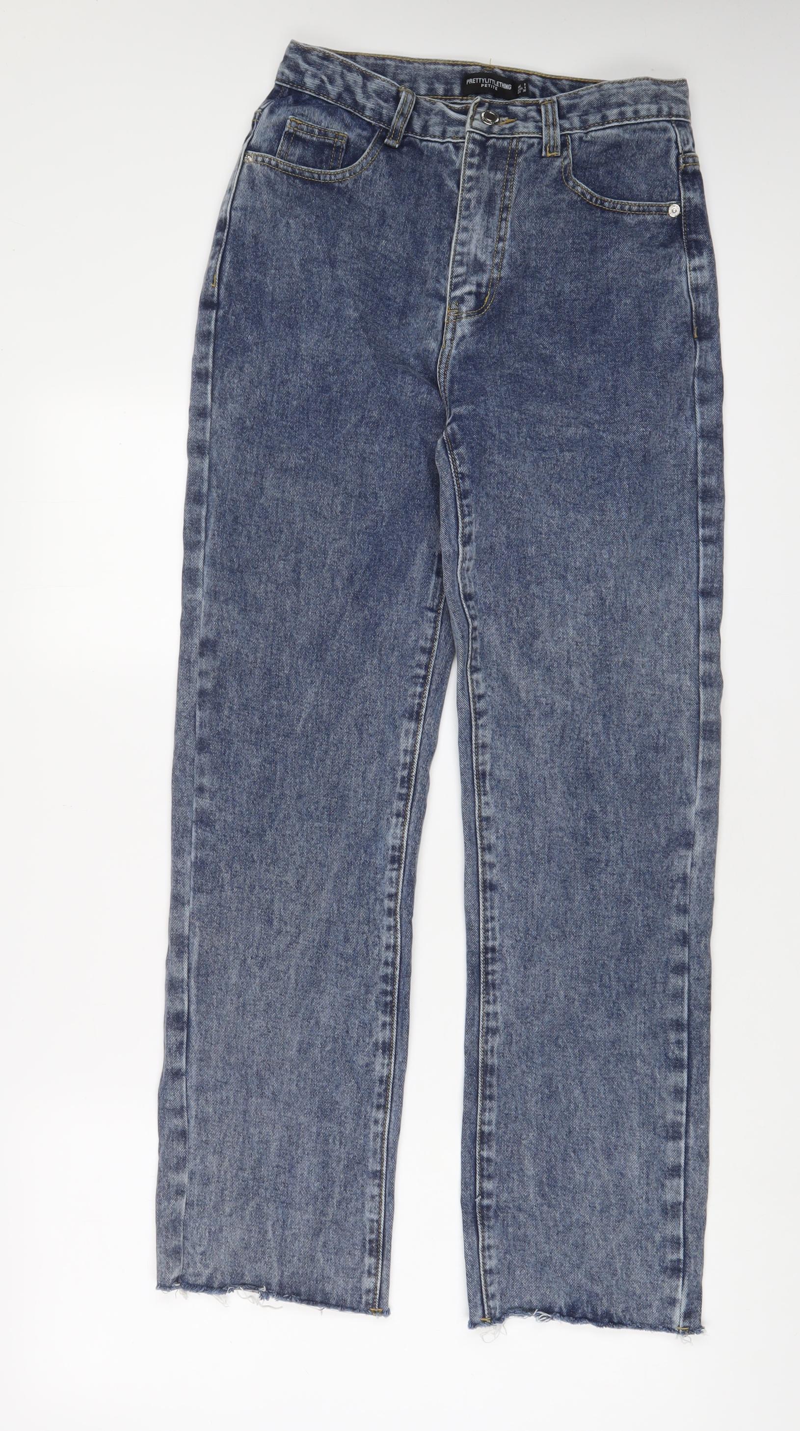PRETTYLITTLETHING Womens Blue Cotton Straight Jeans Size 8 L29 in Regular Zip