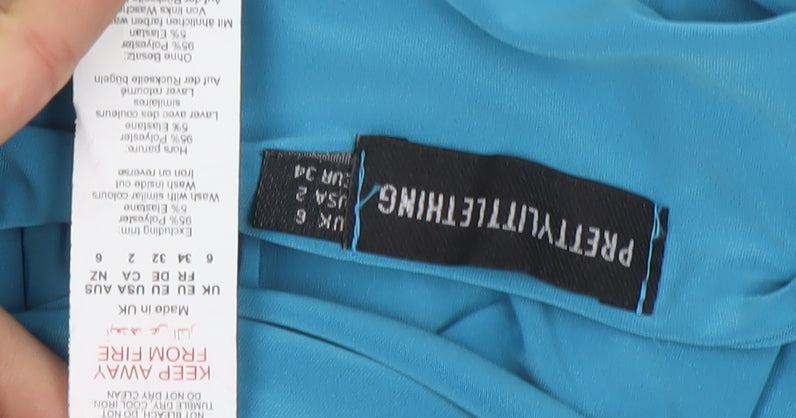 PrettyLittleThing Women's Blue Cropped Long Sleeve Beaded Top Size 6