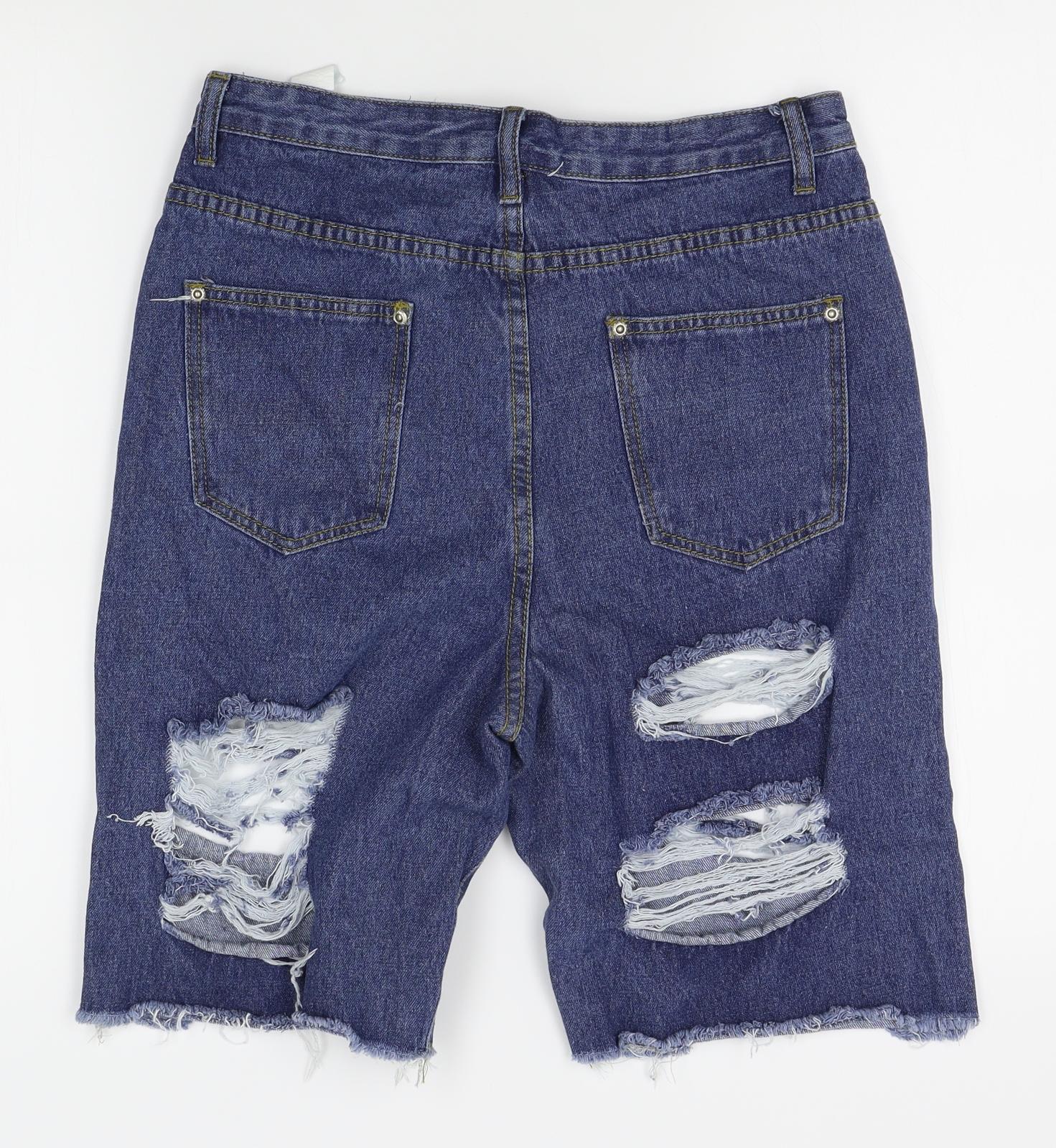 PRETTYLITTLETHING Womens Blue Cut-Off Shorts Size 10 - distressed