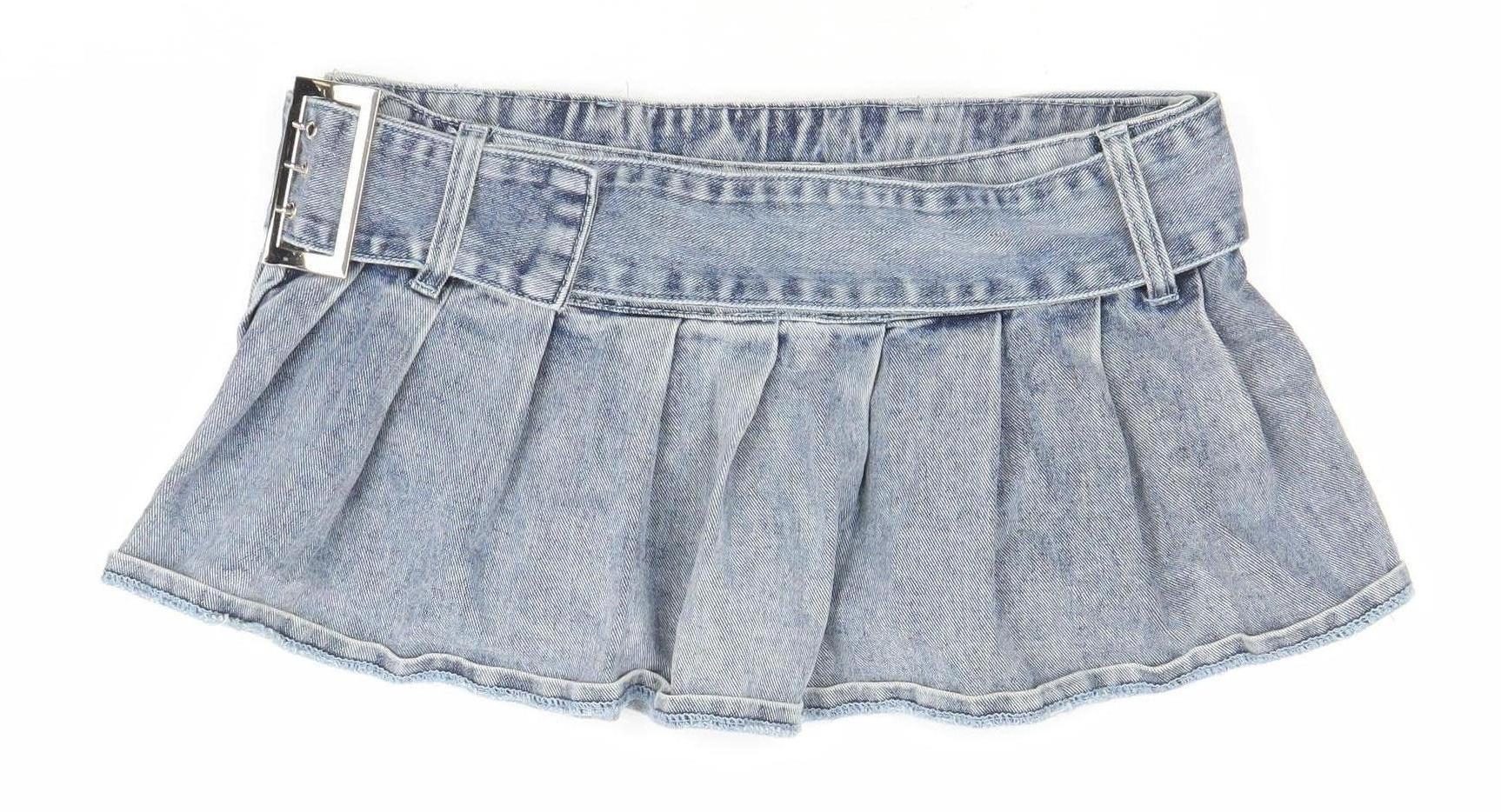- Keywords: PrettyLittleThing denim mini skirt women's pleated skirt blue cotton denim belted mini skirt casual partywear spring summer fashion UK size 10