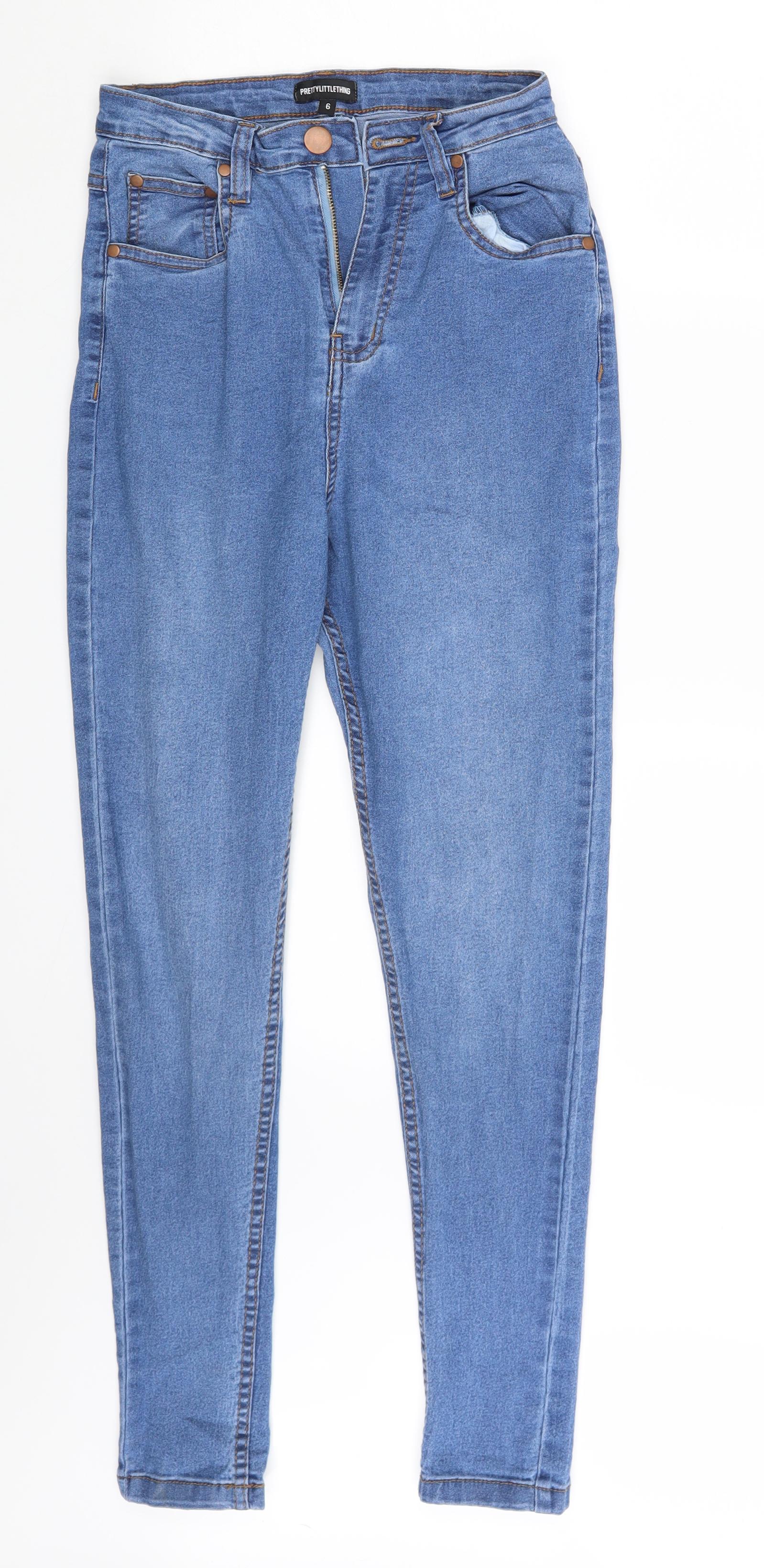 PRETTYLITTLETHING Womens Blue Denim Skinny Jeans Size 6 L28 in