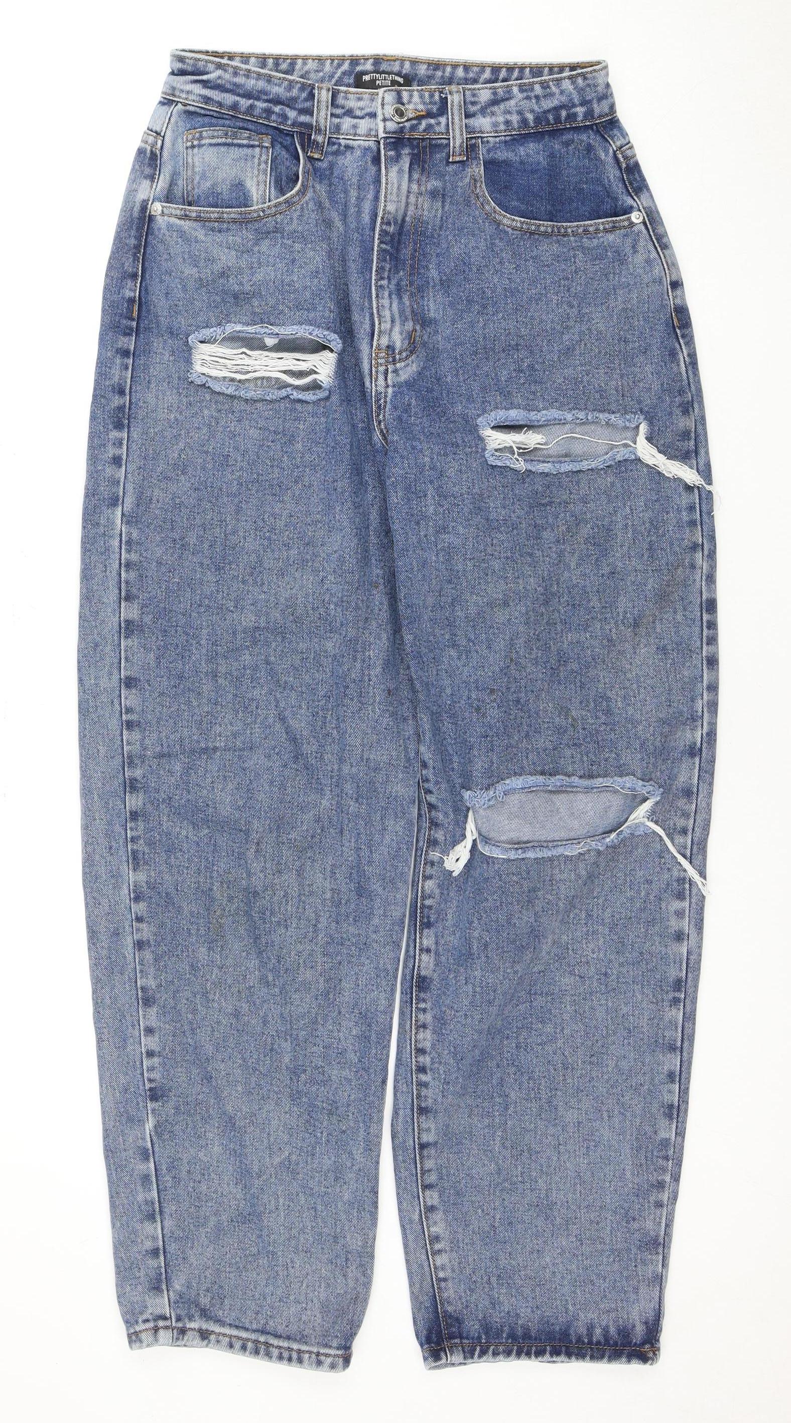 PrettyLittleThing Women's Blue Distressed Mom Jeans Size 10