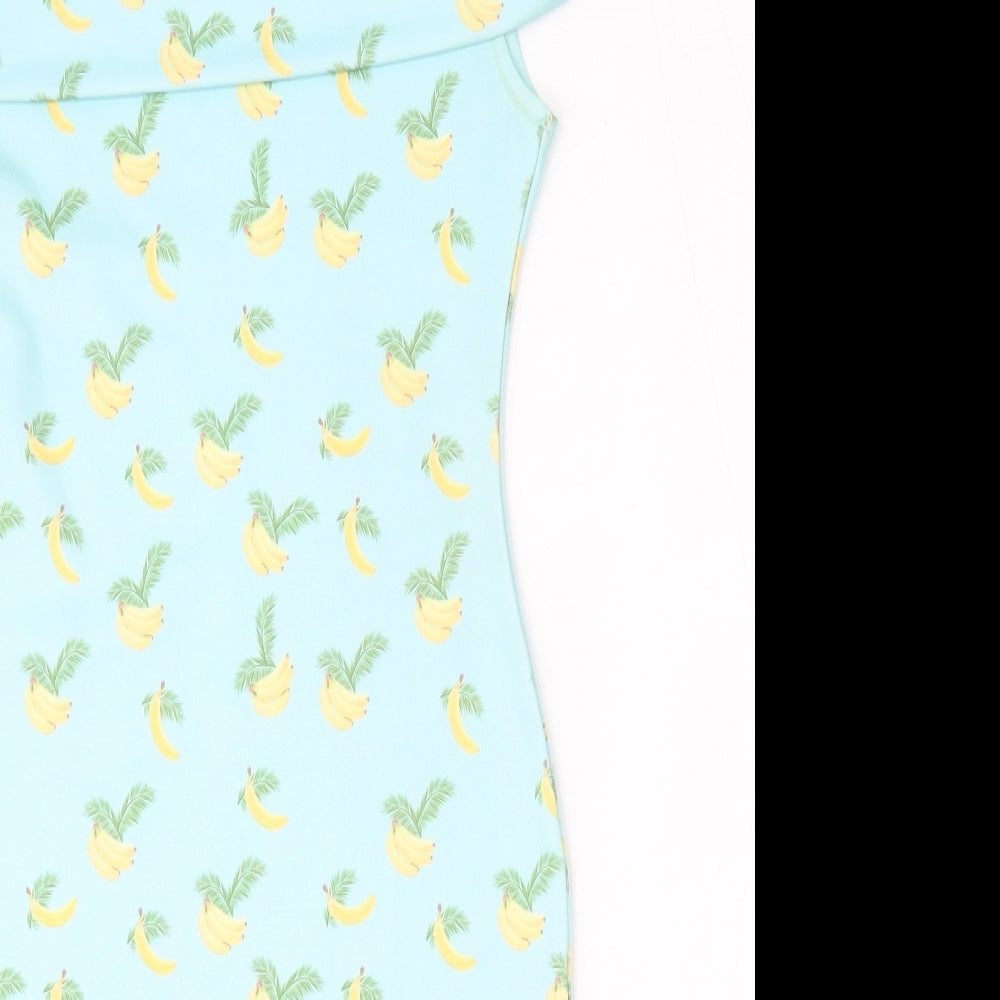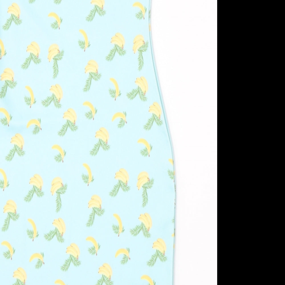 PRETTYLITTLETHING Womens Blue Geometric Polyester Pencil Dress Size 6 Round Neck