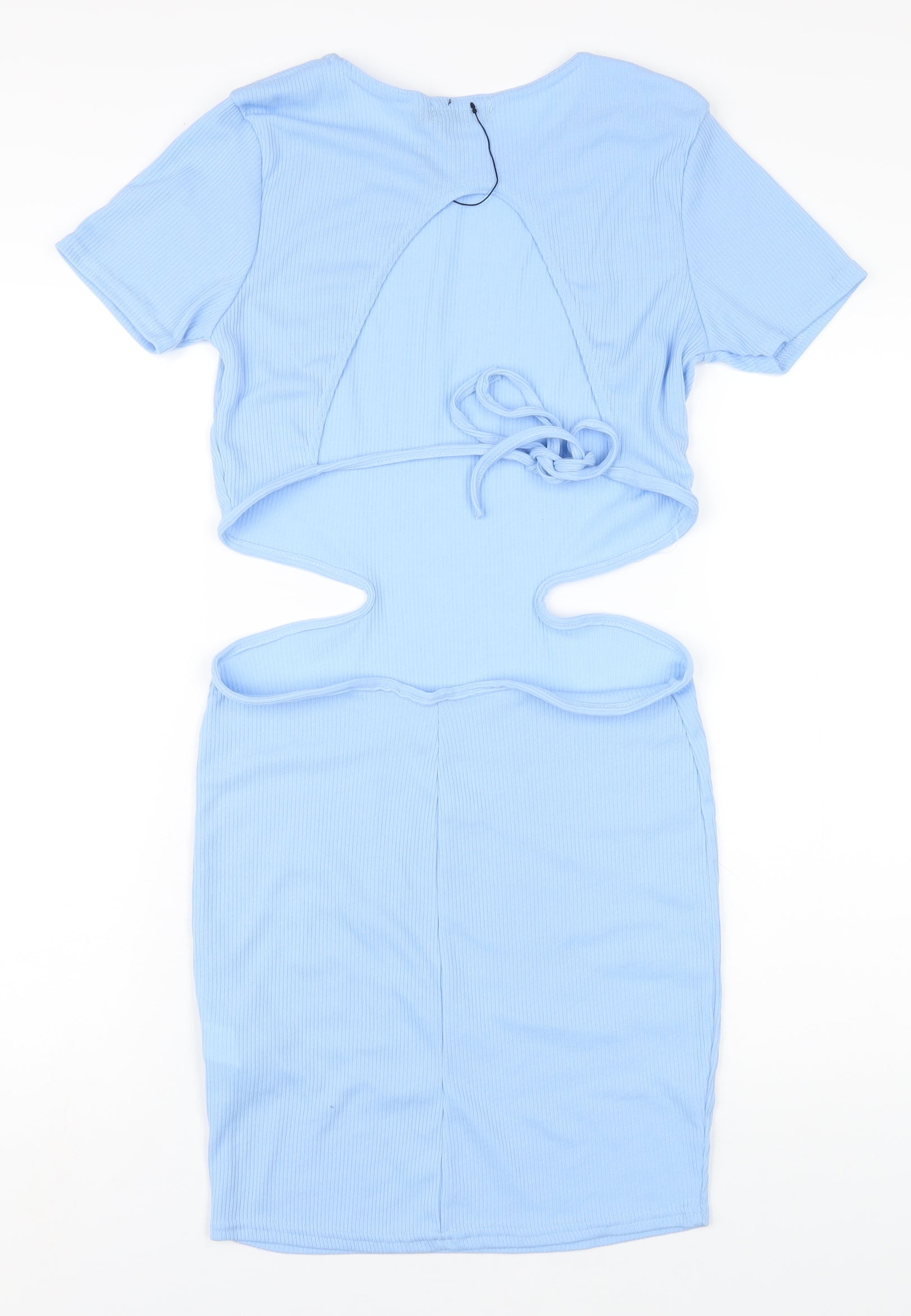 PRETTYLITTLETHING Womens Blue Polyester Bodycon Size 12 Round Neck Pullover