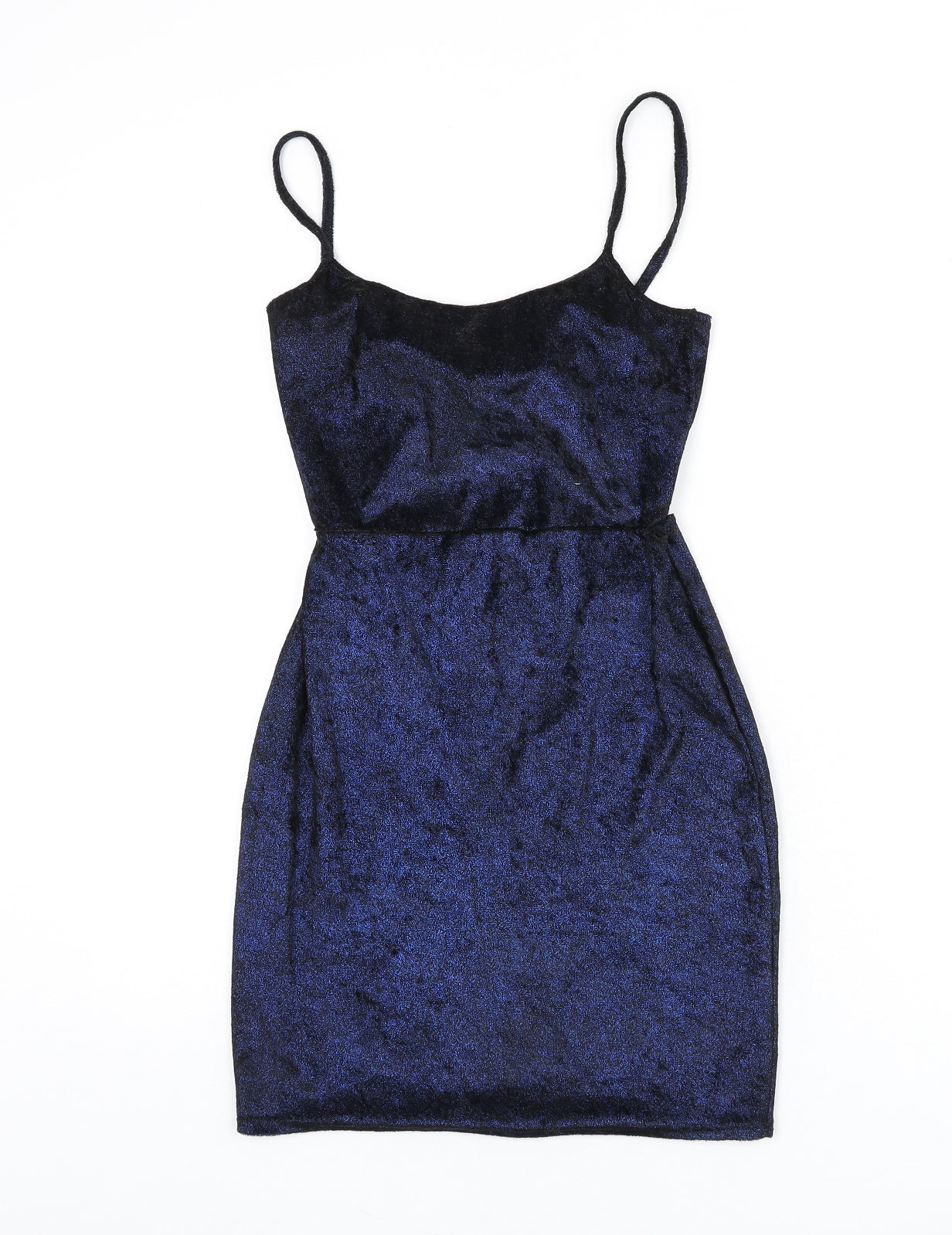 PRETTYLITTLETHING Womens Blue Polyester Bodycon Size 8 Scoop Neck Tie - Mini