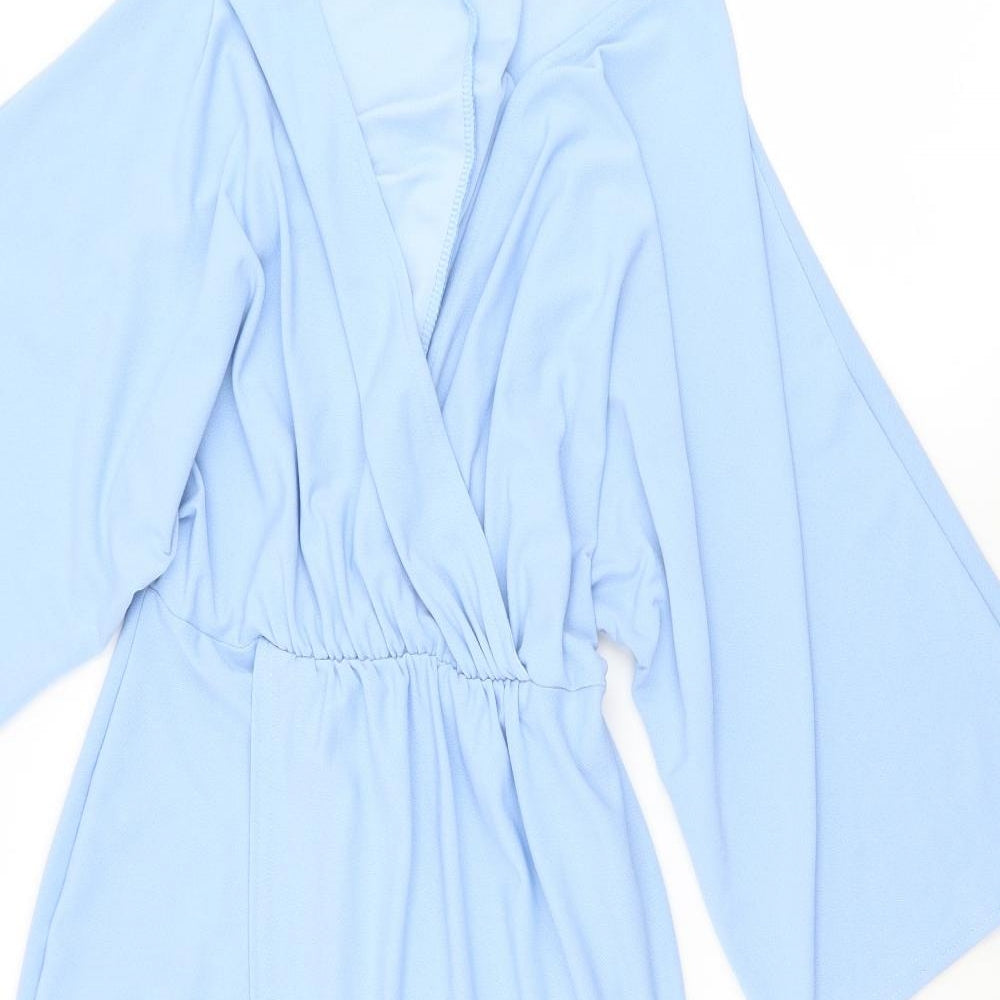 PRETTYLITTLETHING Womens Blue Polyester Sheath Size 8 V-Neck