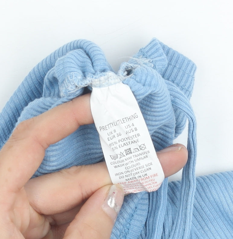 PrettyLittleThing Womens Blue Size 8 Cropped Long Sleeve Top