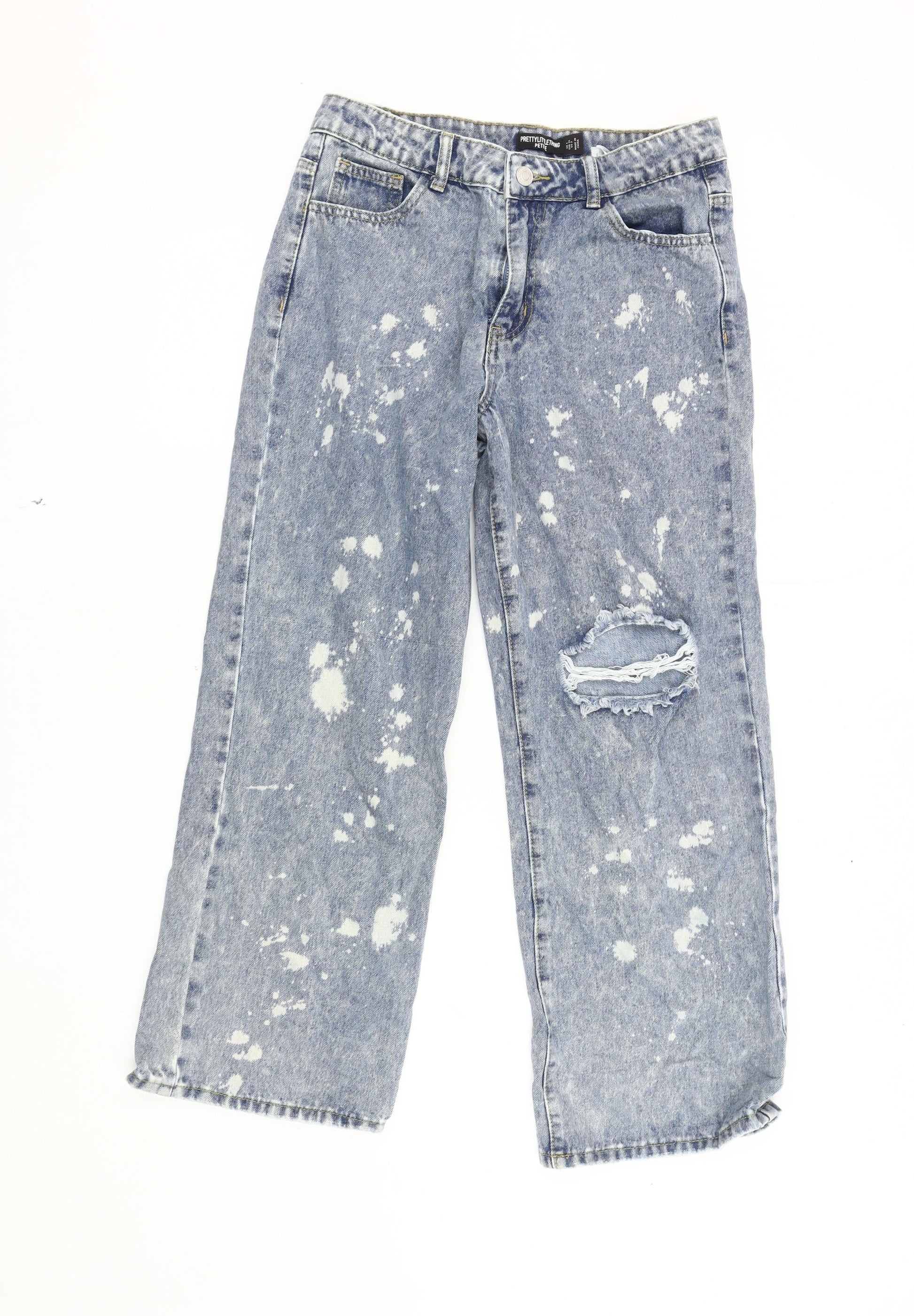 PrettyLittleThing Women's Blue Wide-Leg Distressed Jeans