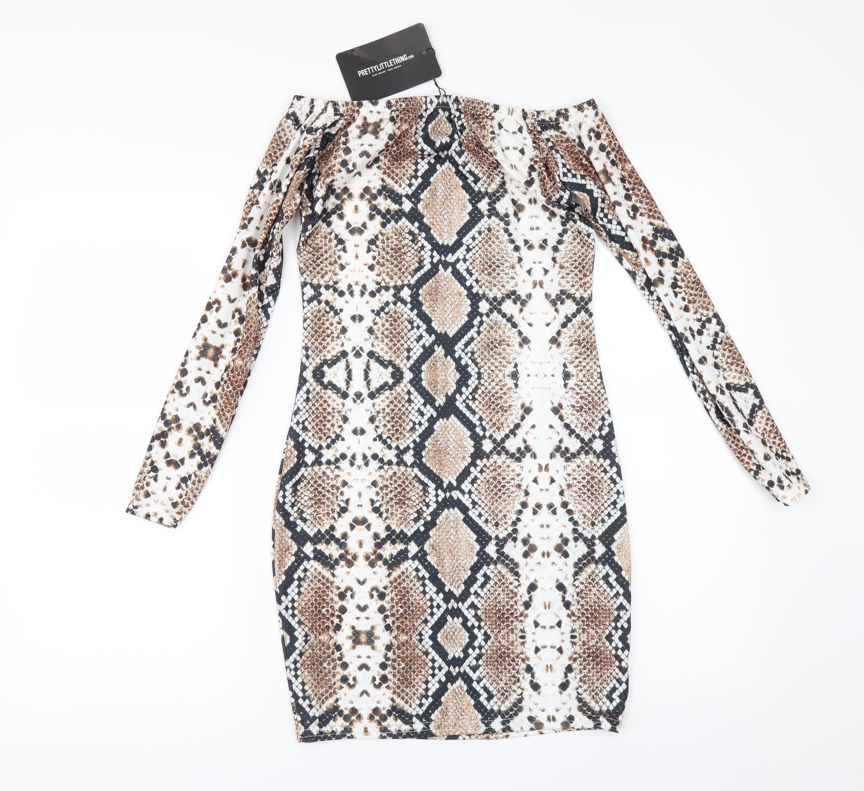 PRETTYLITTLETHING Womens Brown Animal Print Bodycon Size 10