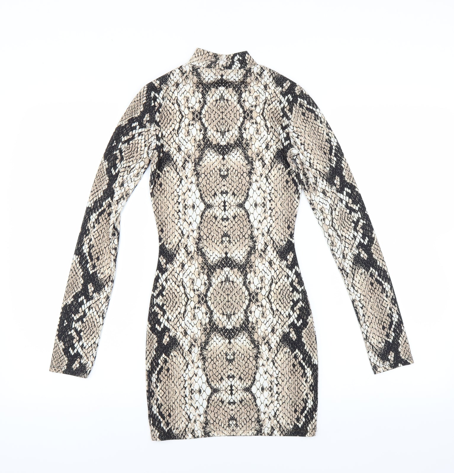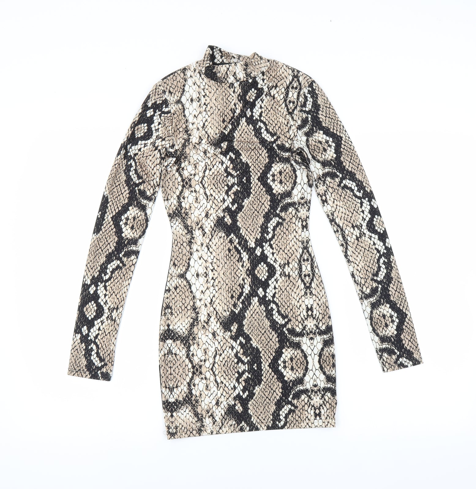 PRETTYLITTLETHING Womens Brown Animal Print Bodycon Size 4