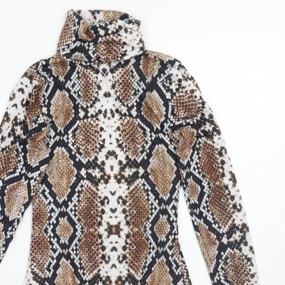 PRETTYLITTLETHING Womens Brown Animal Print Bodysuit One-Piece Size 6
