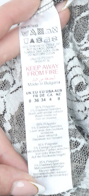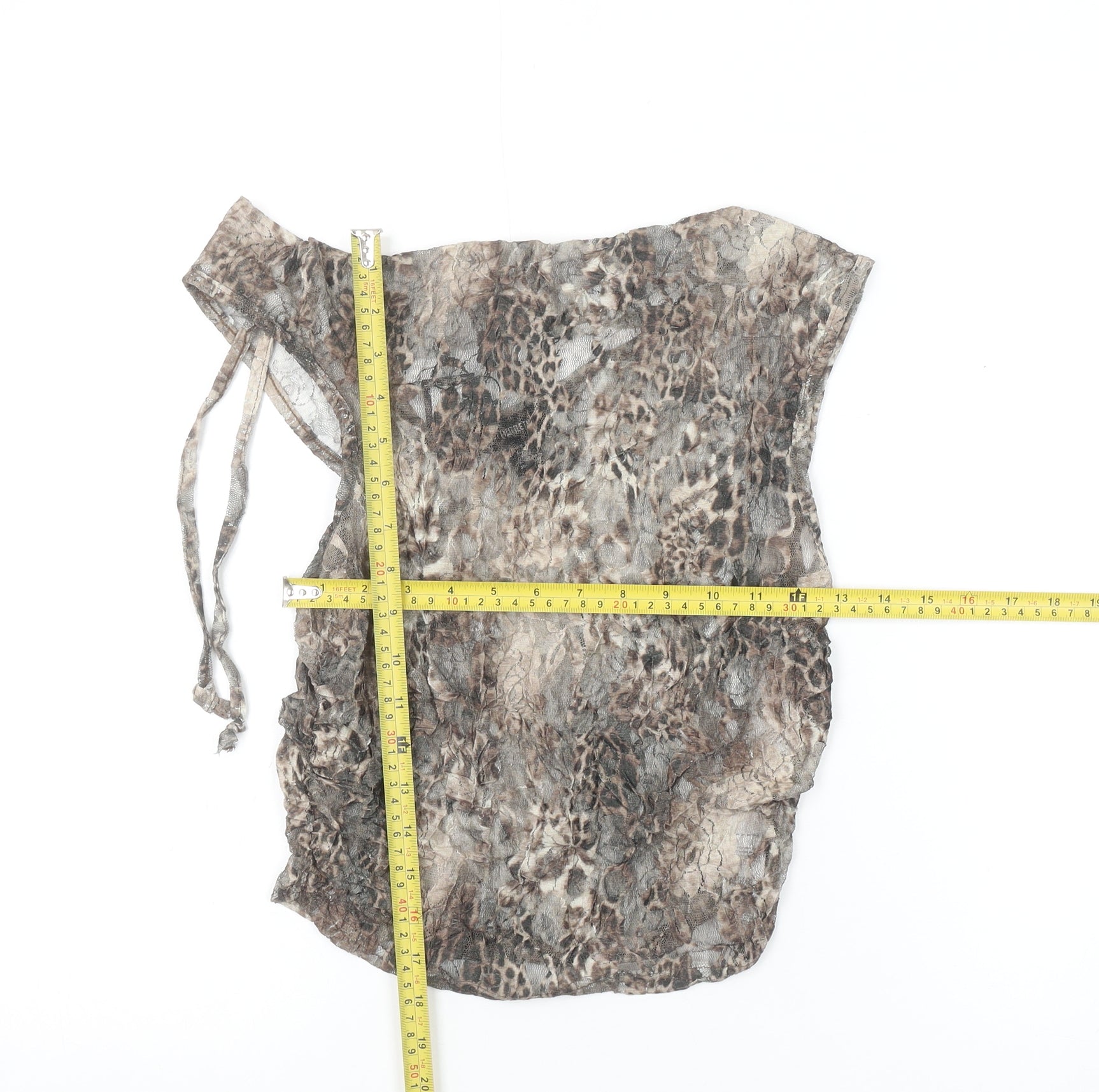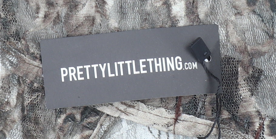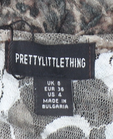 PrettyLittleThing Women's Brown Animal Print Mesh Off Shoulder Blouse Size 8