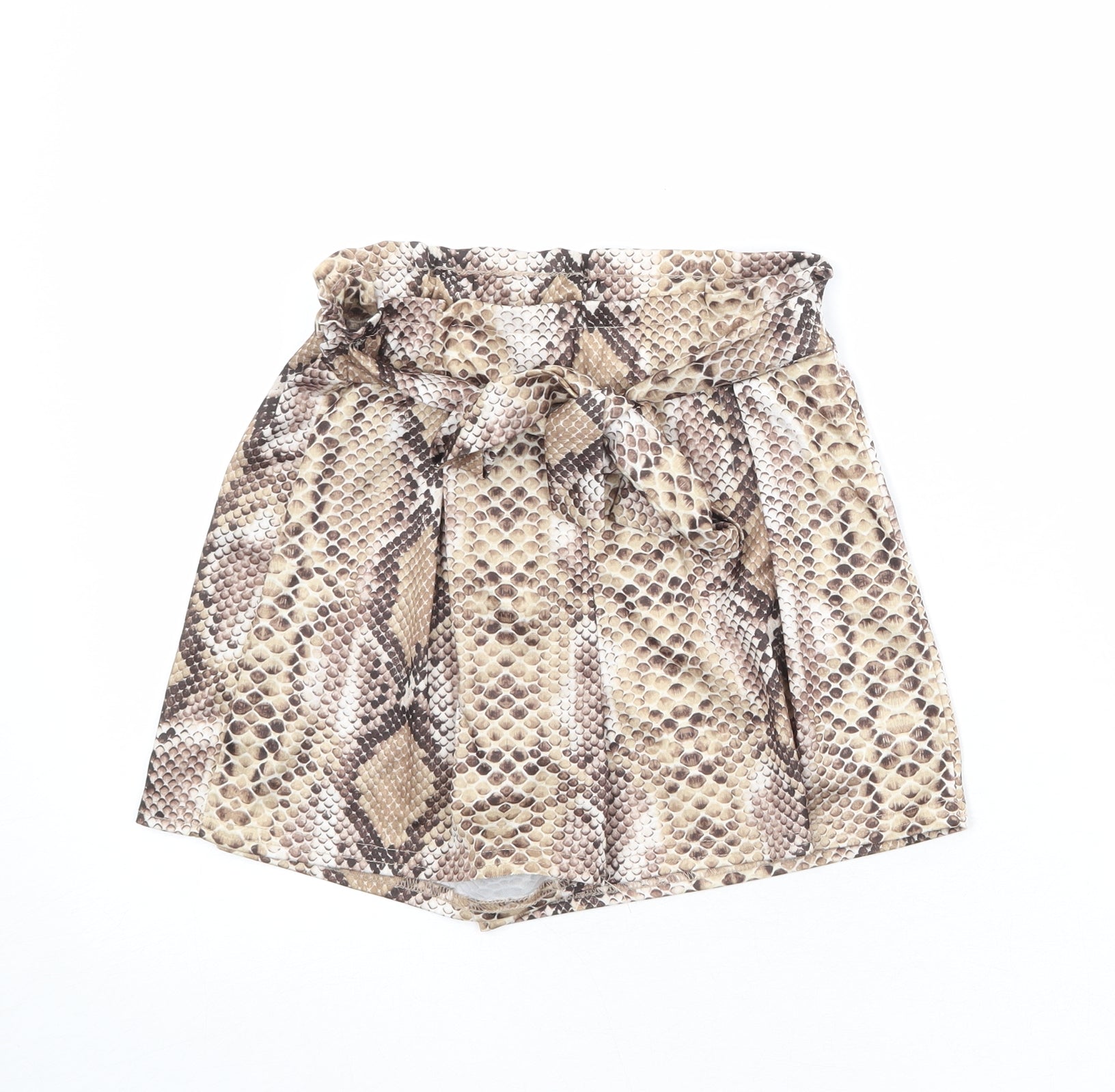 PRETTYLITTLETHING Womens Brown Animal Print Polyester Basic Shorts Size 6 Regular Pull On - Snake Print