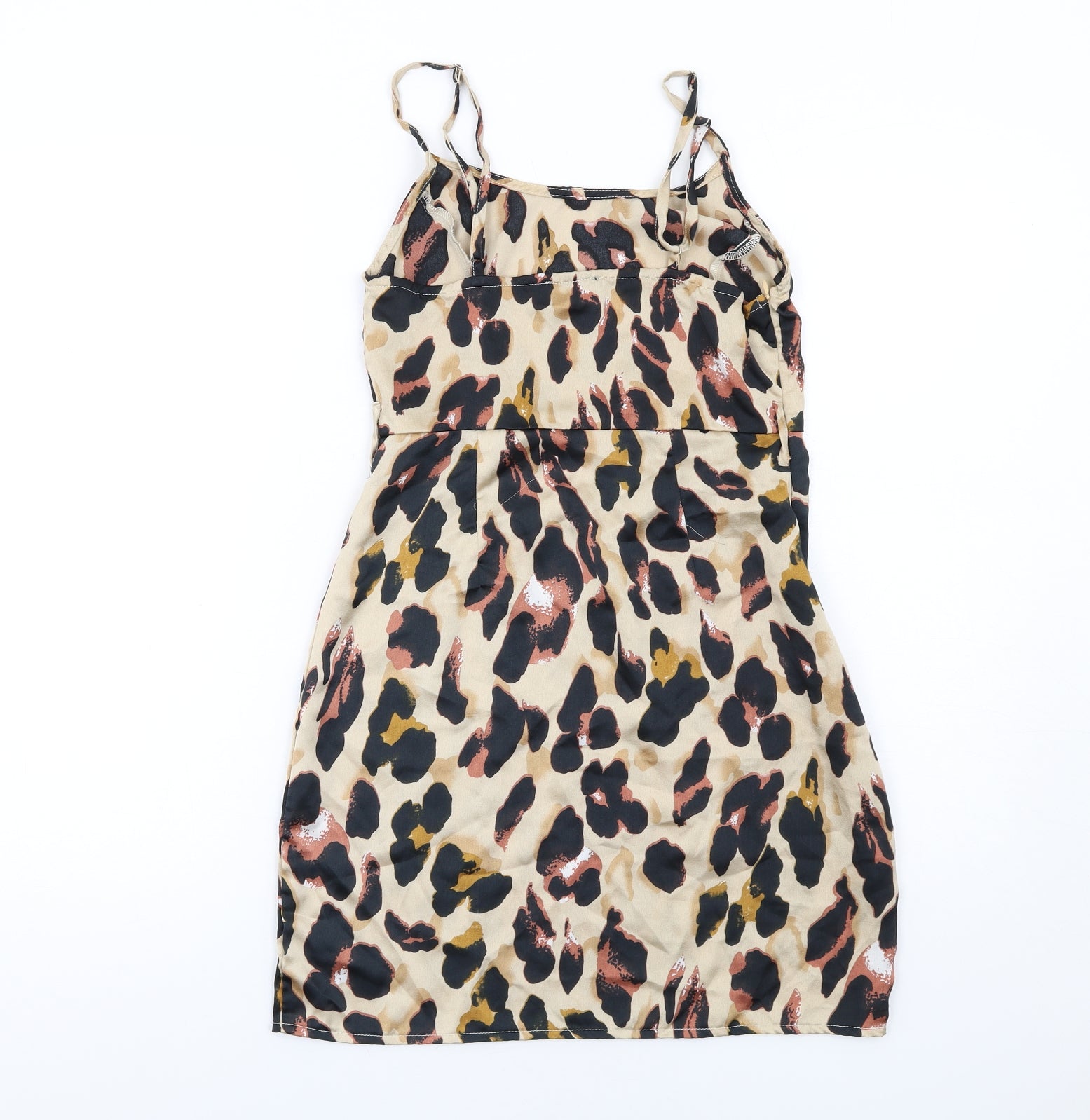 PRETTYLITTLETHING Womens Brown Animal Print Polyester Mini Size 6 Round Neck Zip
