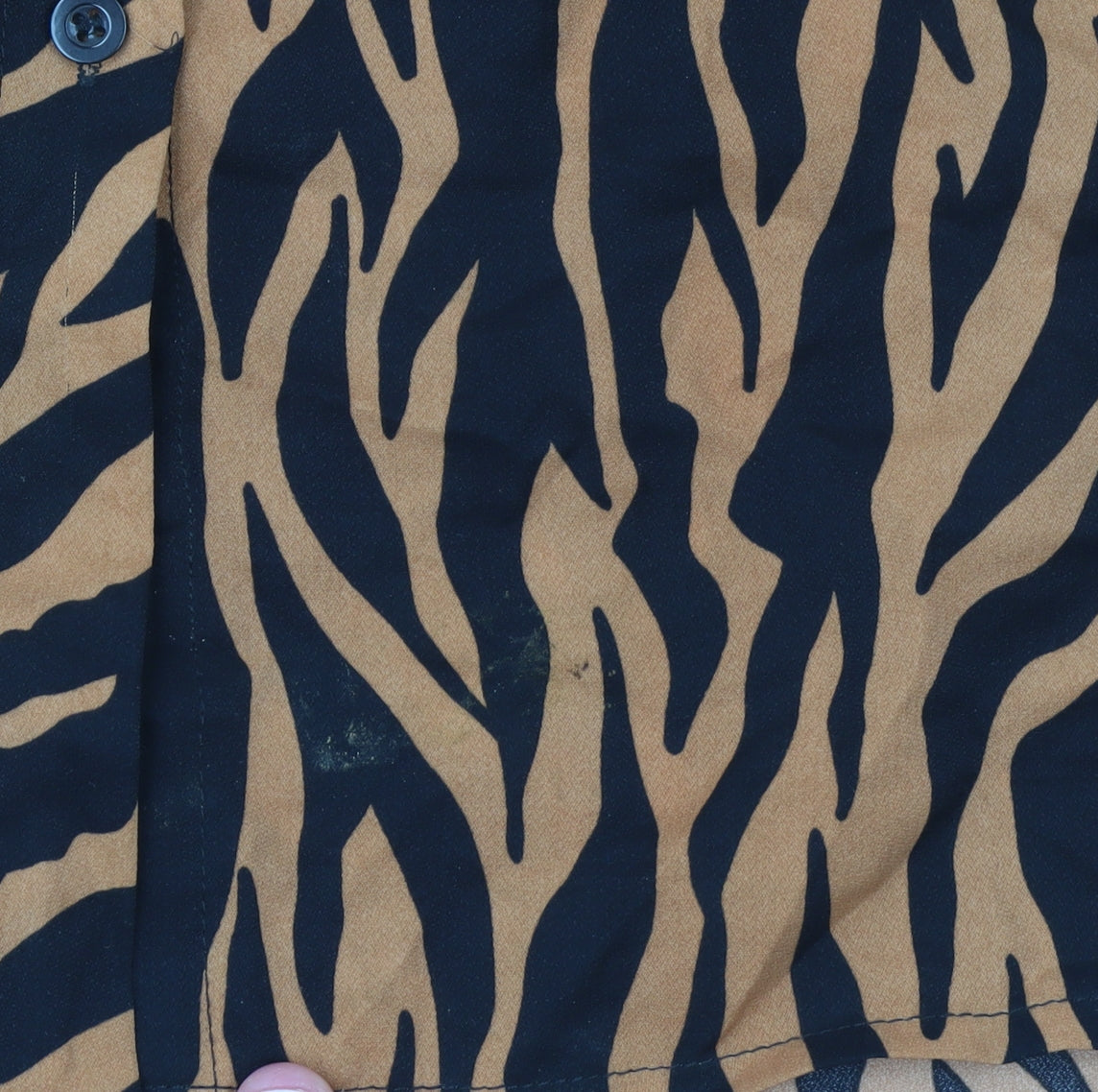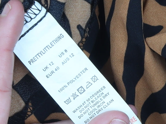 PrettyLittleThing Womens Brown Black Animal Print Long Sleeve Button-Up Shirt Size 12