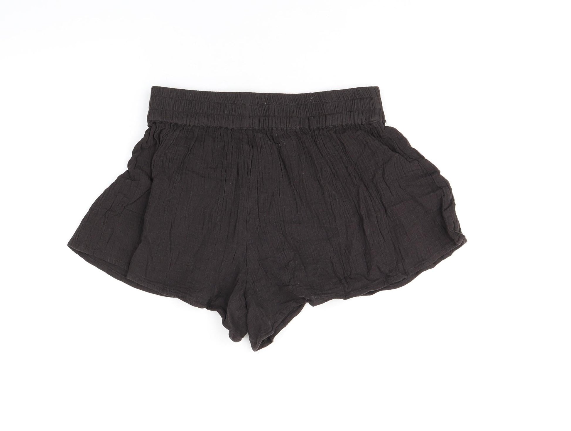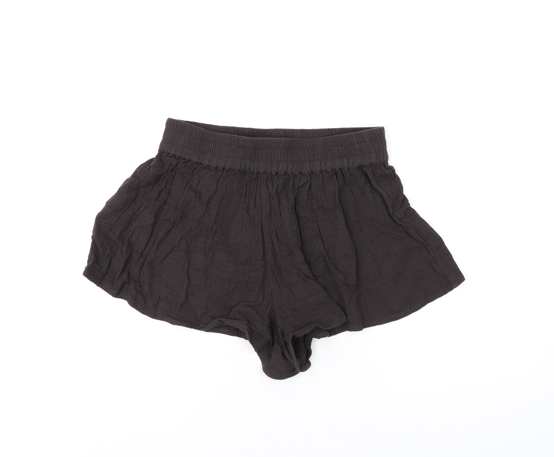PRETTYLITTLETHING Womens Brown Cotton Basic Shorts Size 10 Regular Pull On