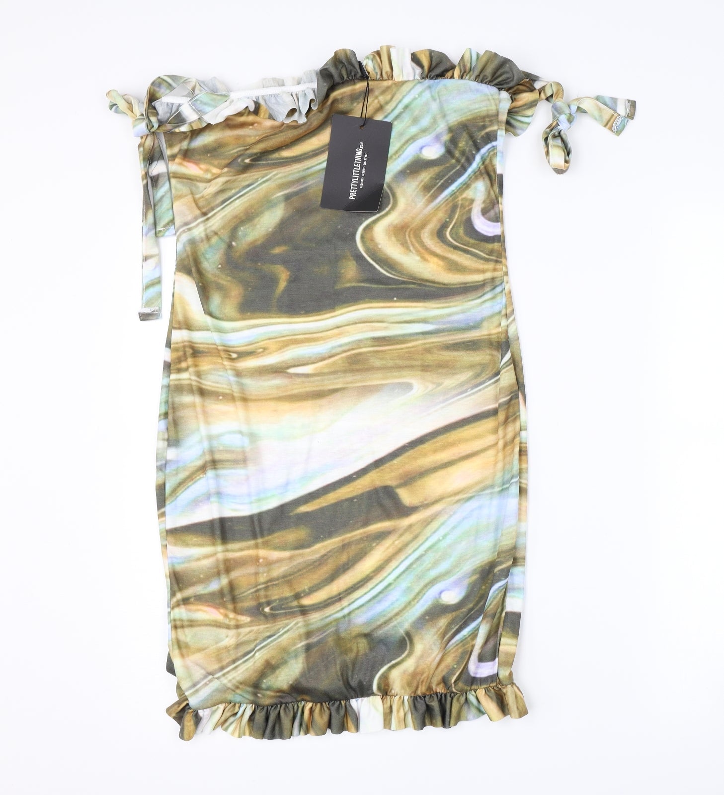 PRETTYLITTLETHING Womens Brown Geometric Bodycon Size 12