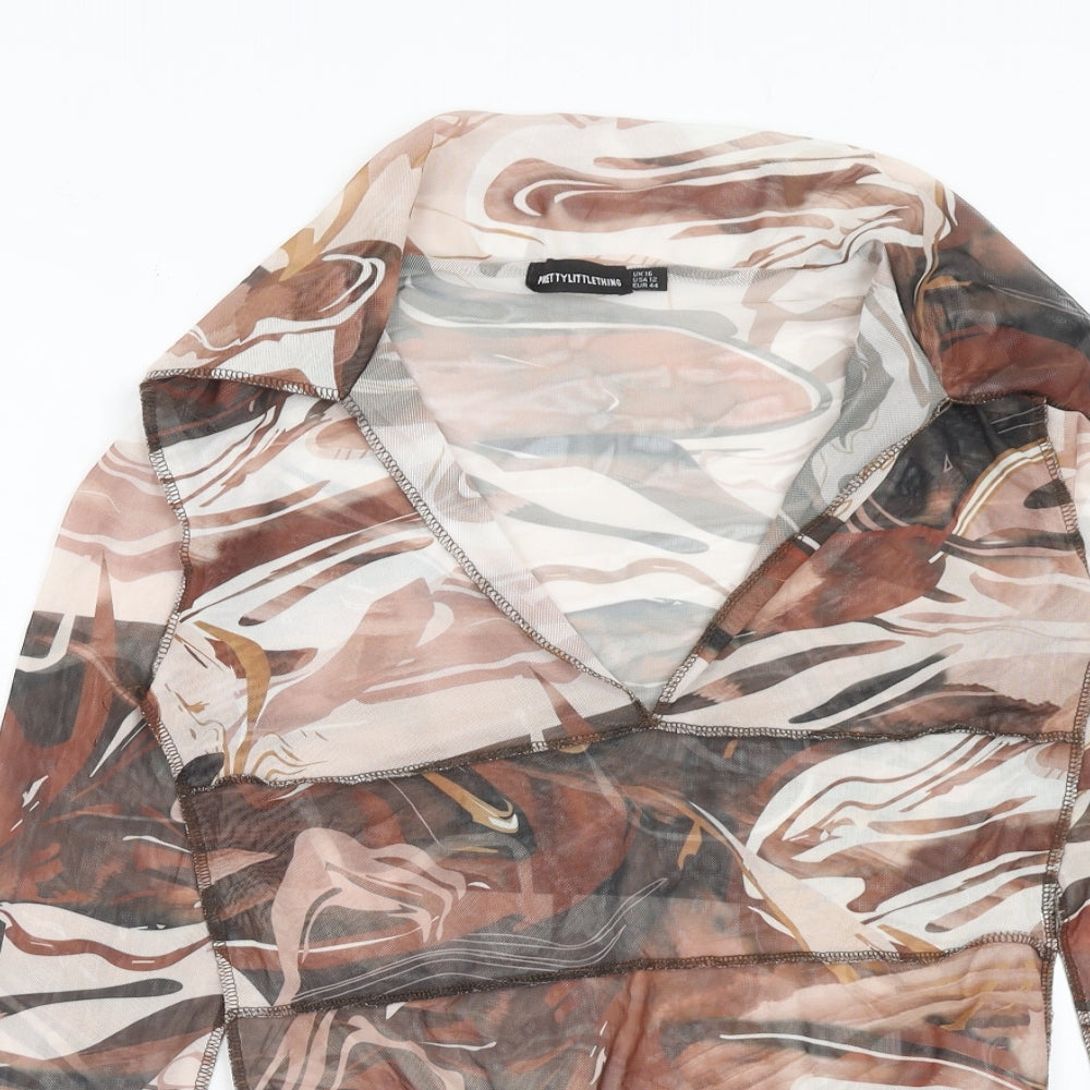 PRETTYLITTLETHING Womens Brown Geometric Polyester Bodysuit One-Piece Size 16 Snap