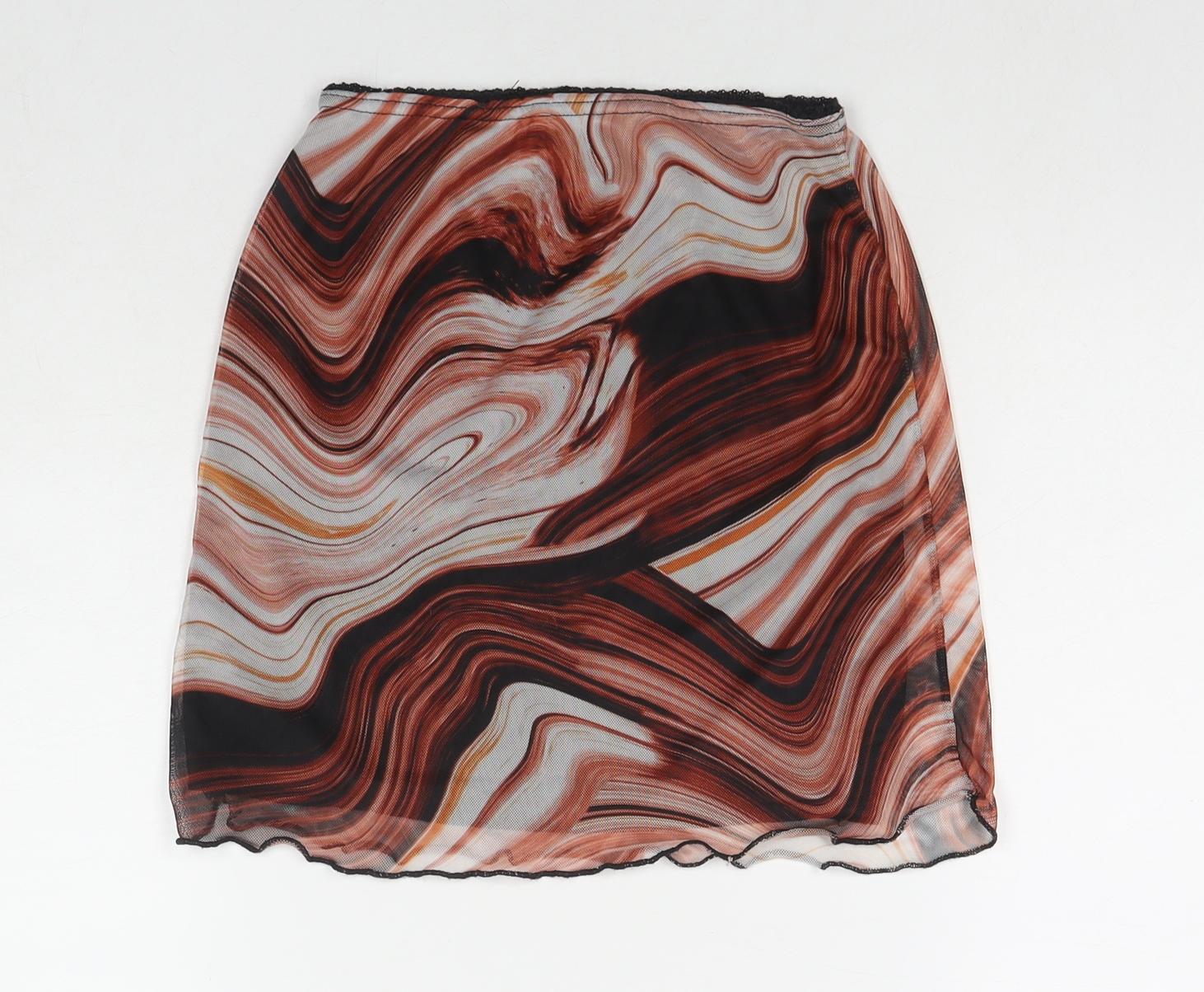 PRETTYLITTLETHING Womens Brown Geometric Polyester Mini Skirt Size 6