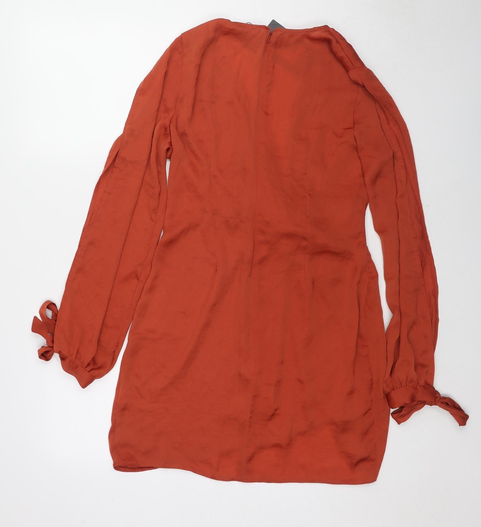 PRETTYLITTLETHING Womens Brown Polyester A-Line Size 12 V-Neck Zip