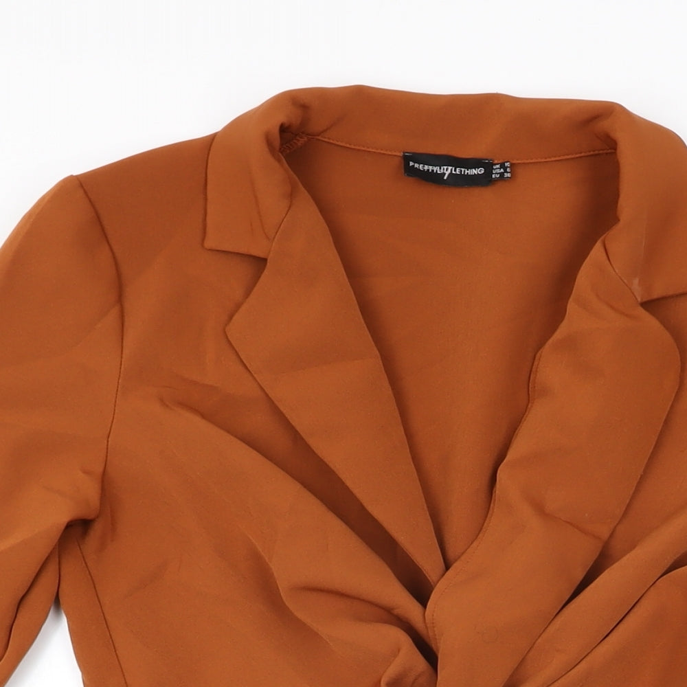 PRETTYLITTLETHING Womens Brown Polyester Bodycon Size 10 Collared Zip