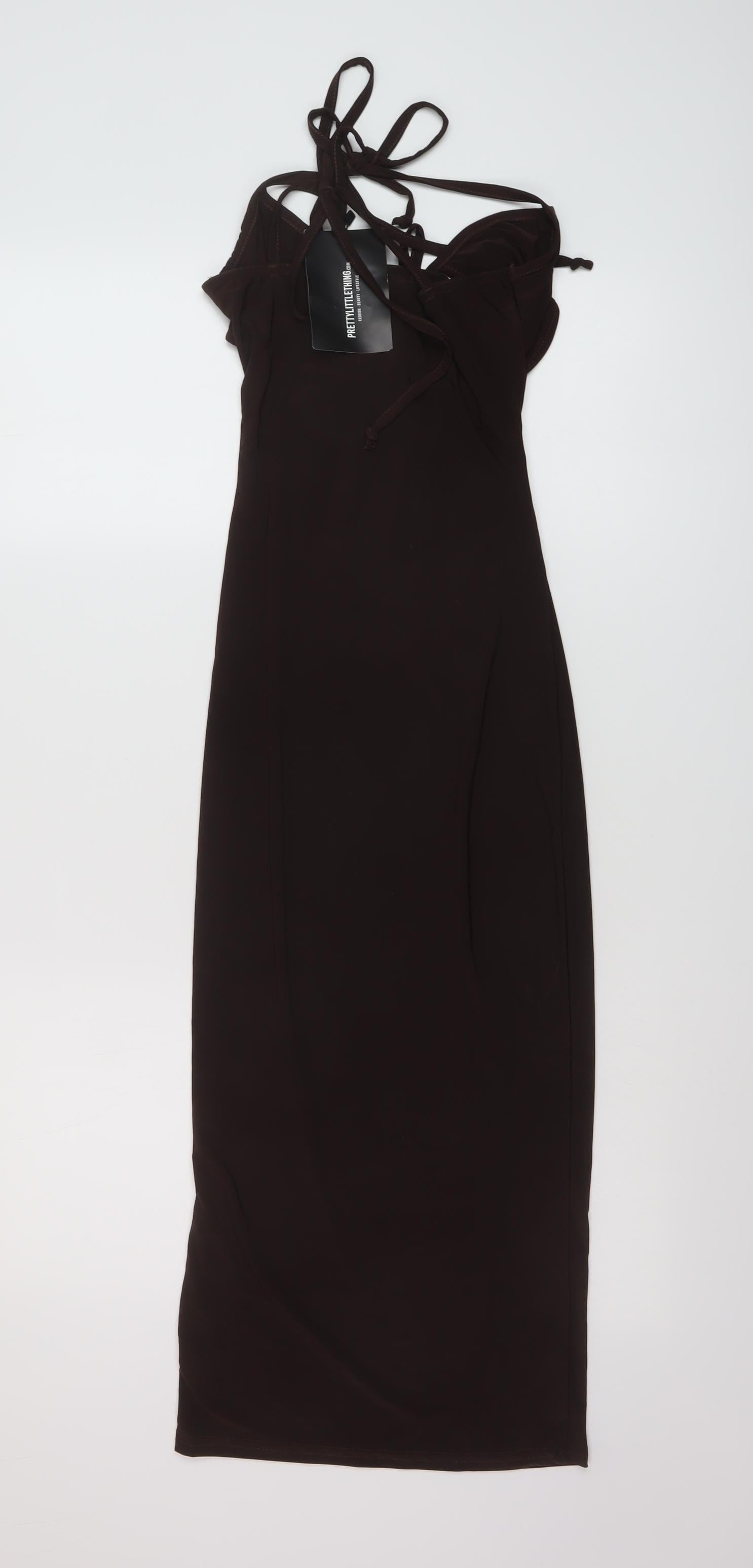 PRETTYLITTLETHING Womens Brown Polyester Bodycon Size 8 V-Neck Pullover