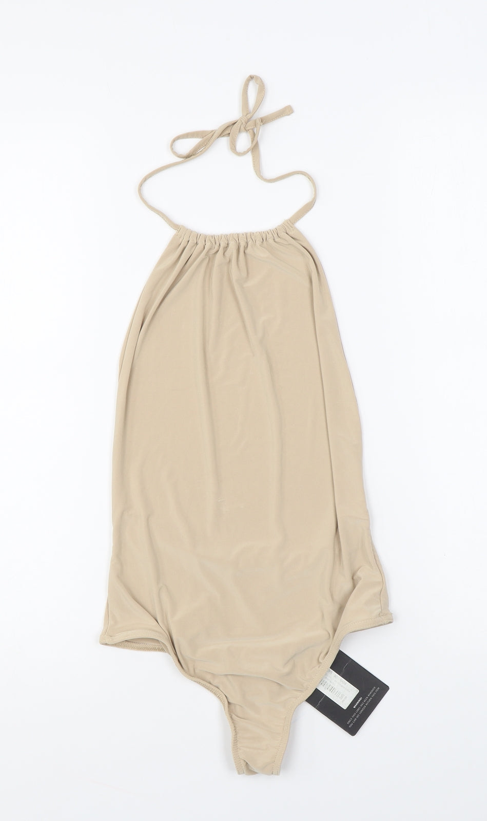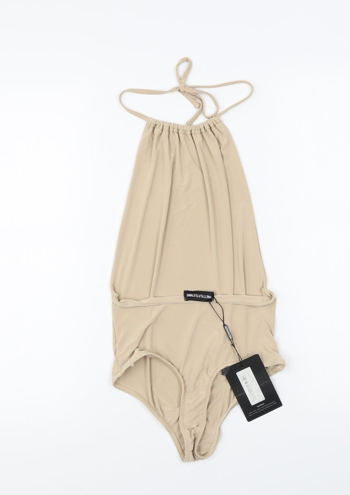 PRETTYLITTLETHING Womens Brown Polyester Bodysuit One-Piece Size 6 Pullover
