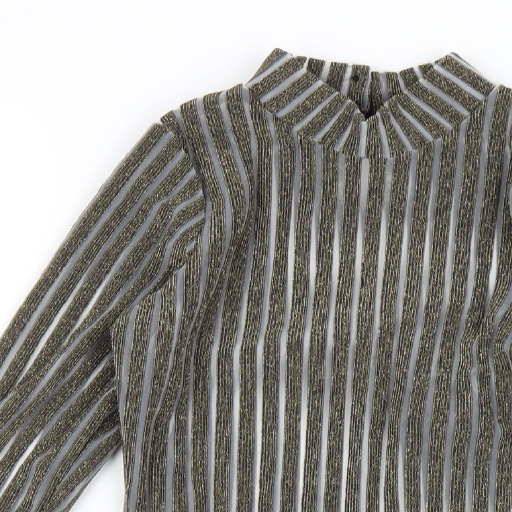 PRETTYLITTLETHING Womens Gold Striped Polyester Bodysuit One-Piece Size 10 Button