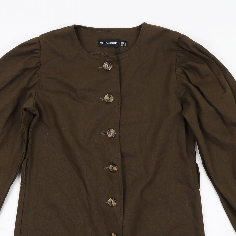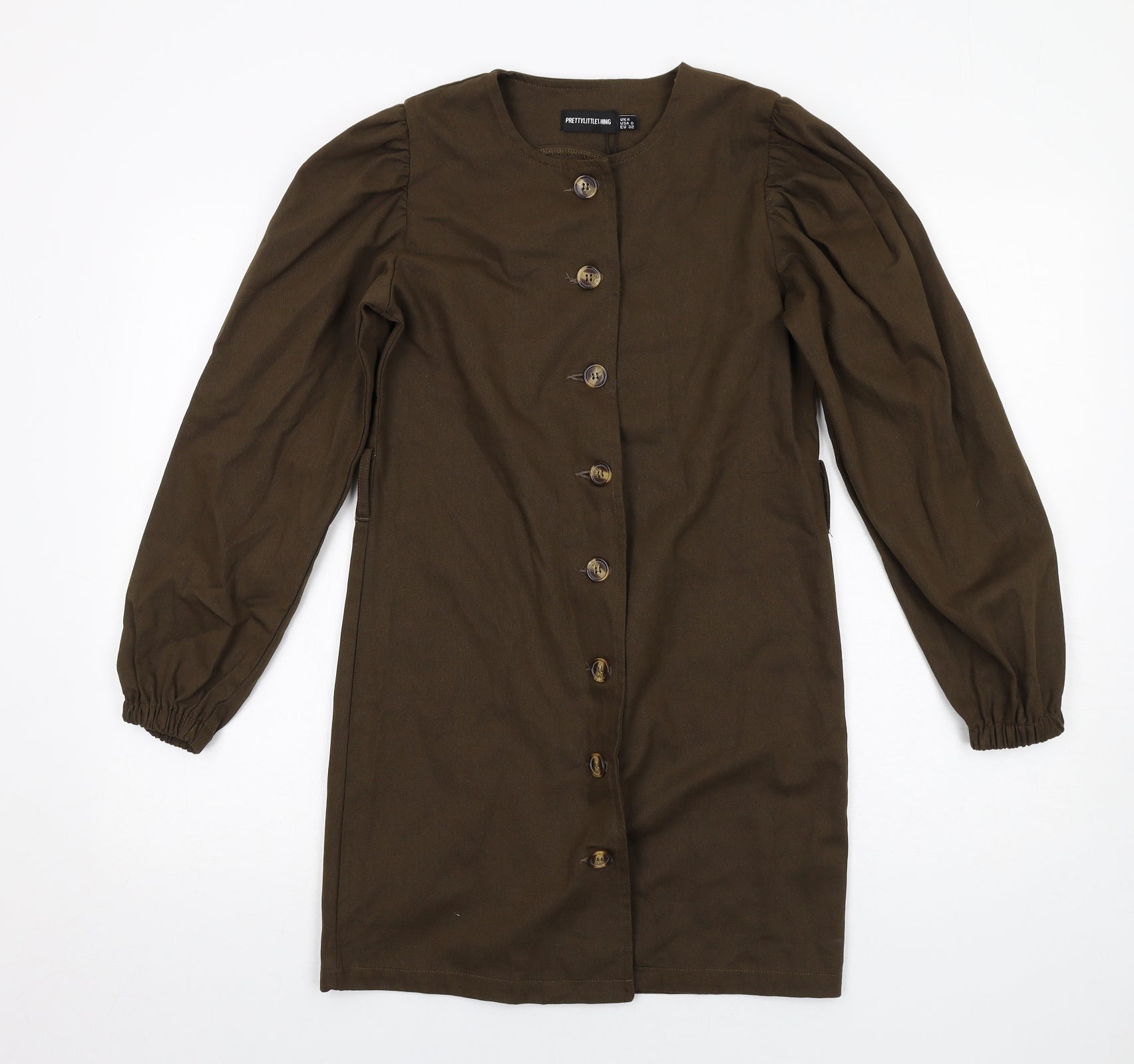 PRETTYLITTLETHING Womens Green Cotton A-Line Size 4 Round Neck Button