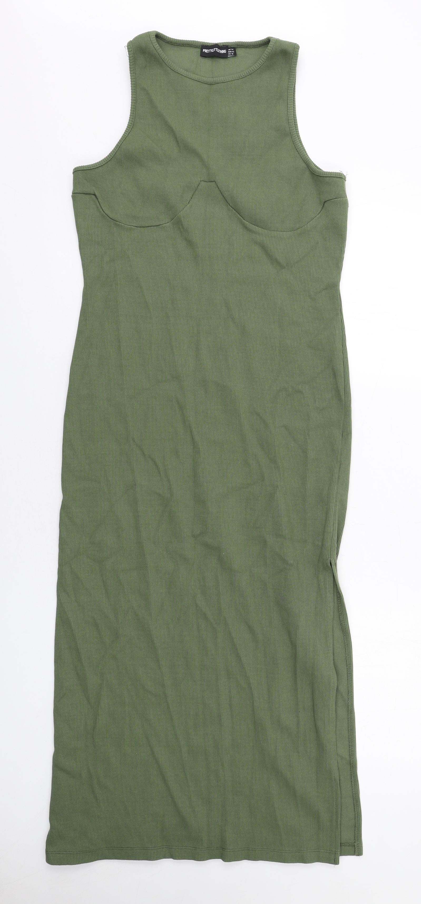 PRETTYLITTLETHING Womens Green Cotton Bodycon Size 14 Round Neck Pullover