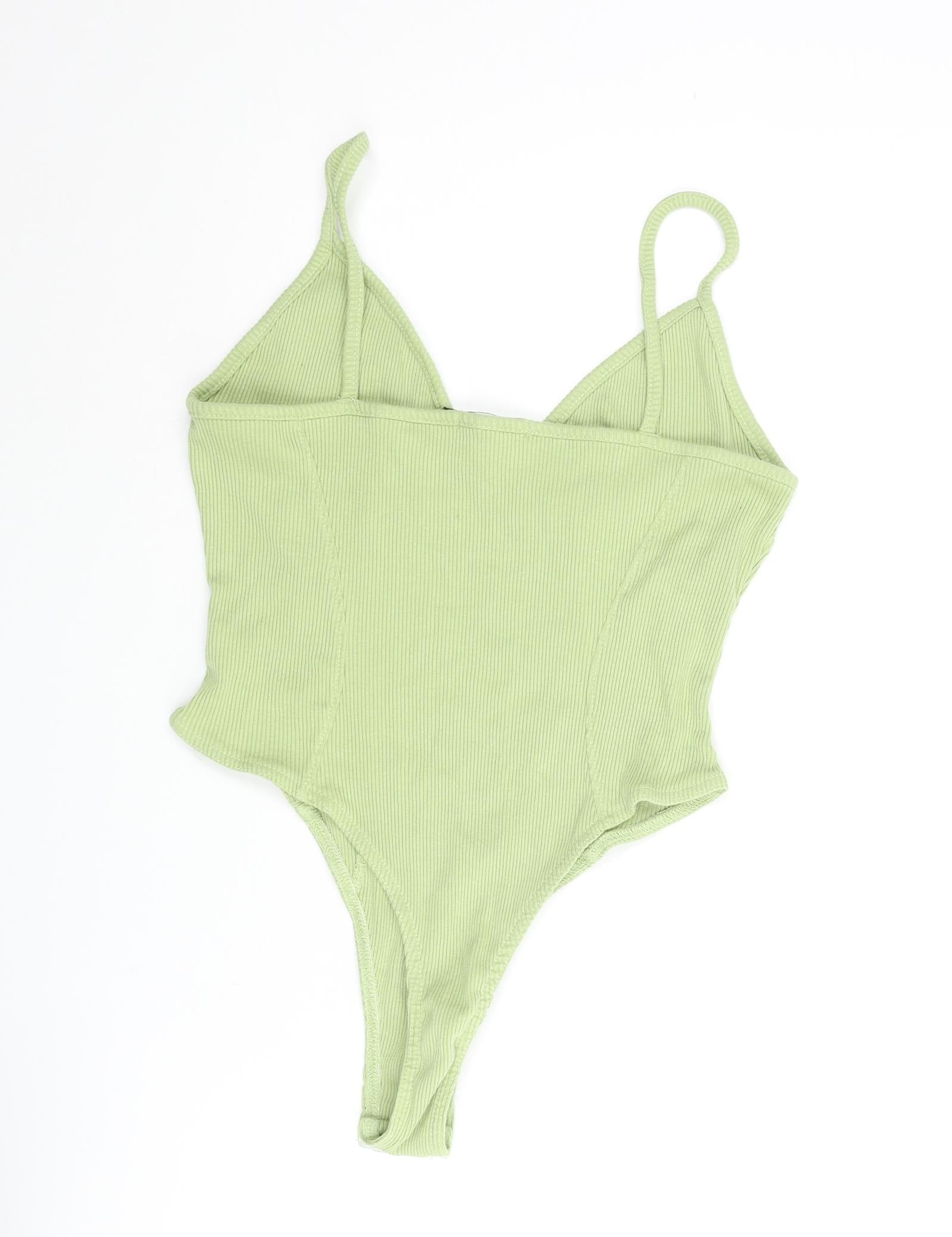 PRETTYLITTLETHING Womens Green Cotton Bodysuit One-Piece Size 10 Snap - Ribbed Logo