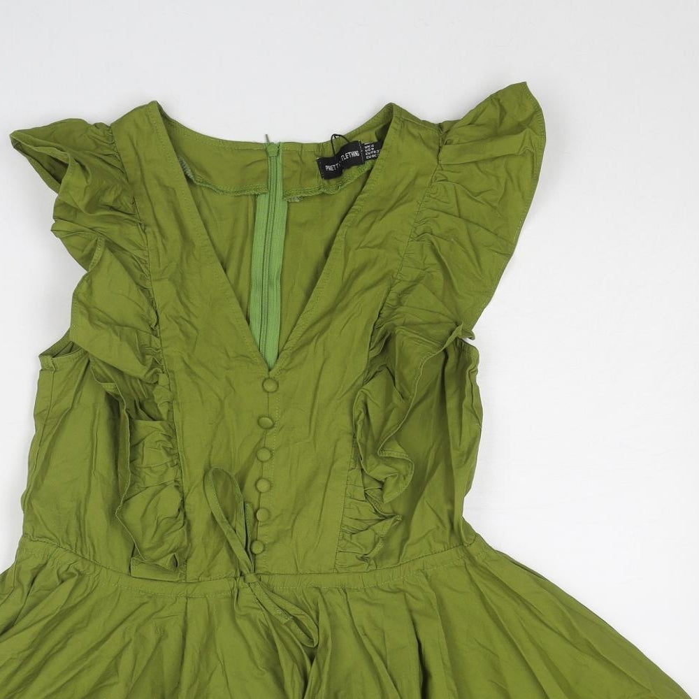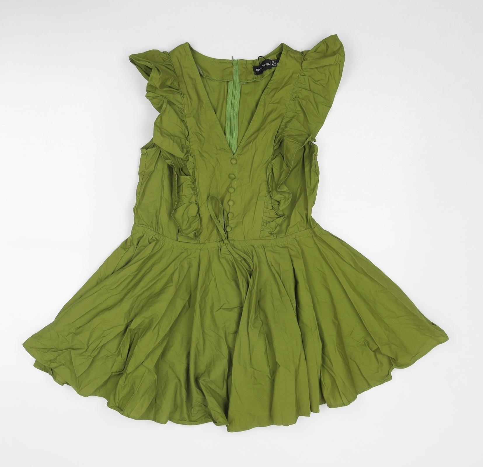 PRETTYLITTLETHING Womens Green Cotton Playsuit One-Piece Size 4 Zip