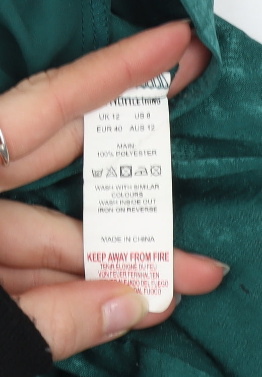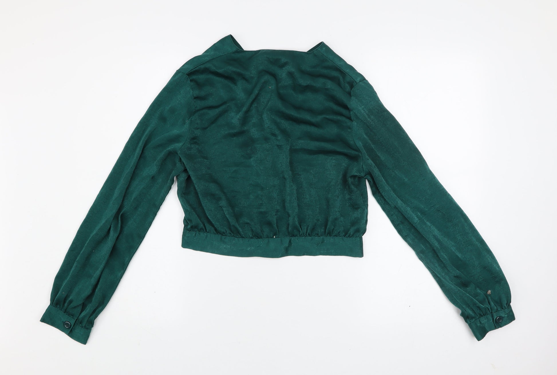 PrettyLittleThing Women's Green Cropped Satin Blouse UK 12