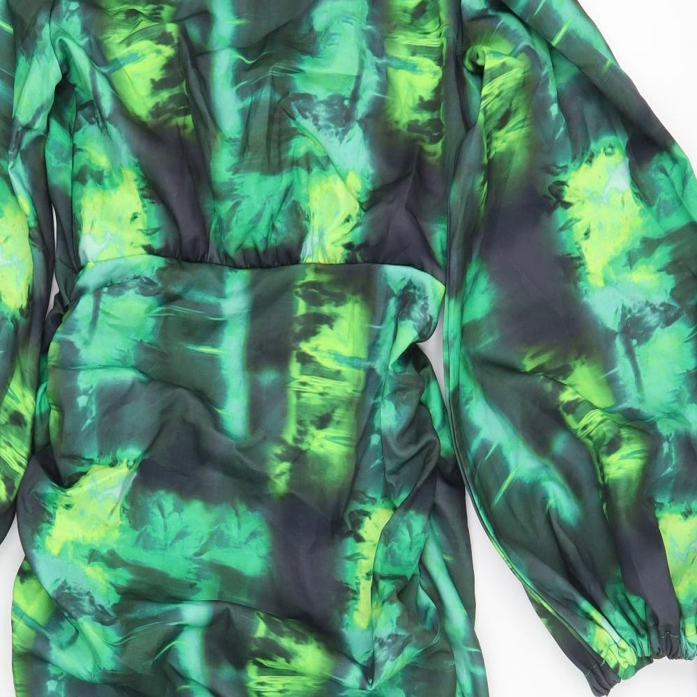 PRETTYLITTLETHING Womens Green Geometric Polyester Bodycon Size 8 Collared Zip