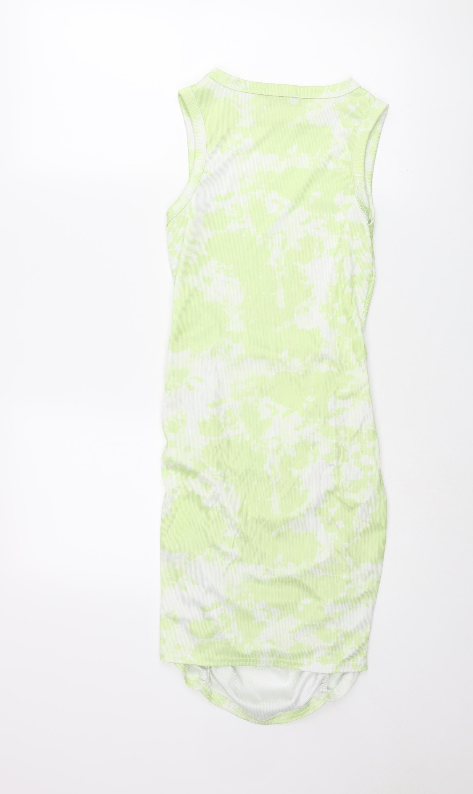 PRETTYLITTLETHING Womens Green Geometric Polyester Tank Dress Size 8 Round Neck Pullover - Rouched
