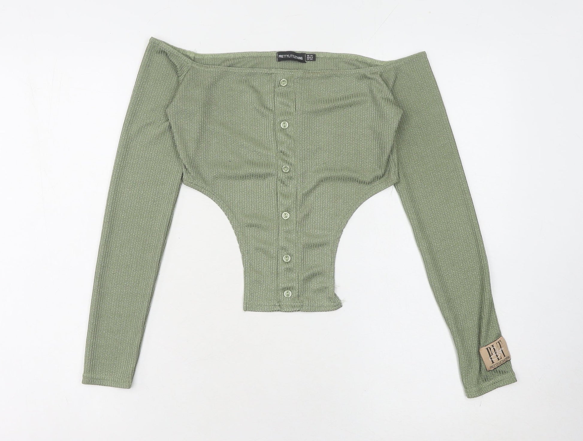 PrettyLittleThing Women's Green Off Shoulder Blouse Size 10