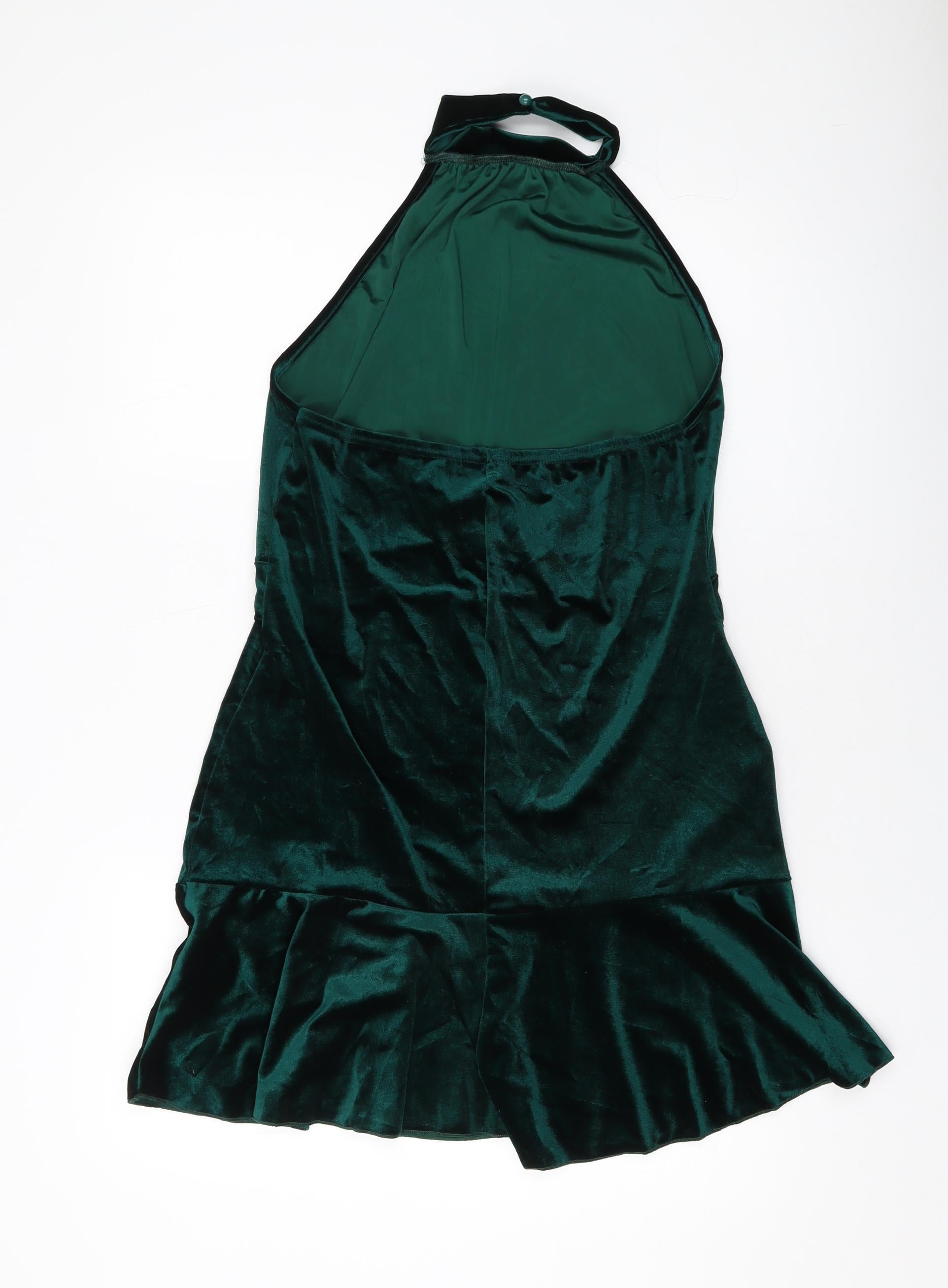 PRETTYLITTLETHING Womens Green Polyester A-Line Size 16 Mock Neck Buckle