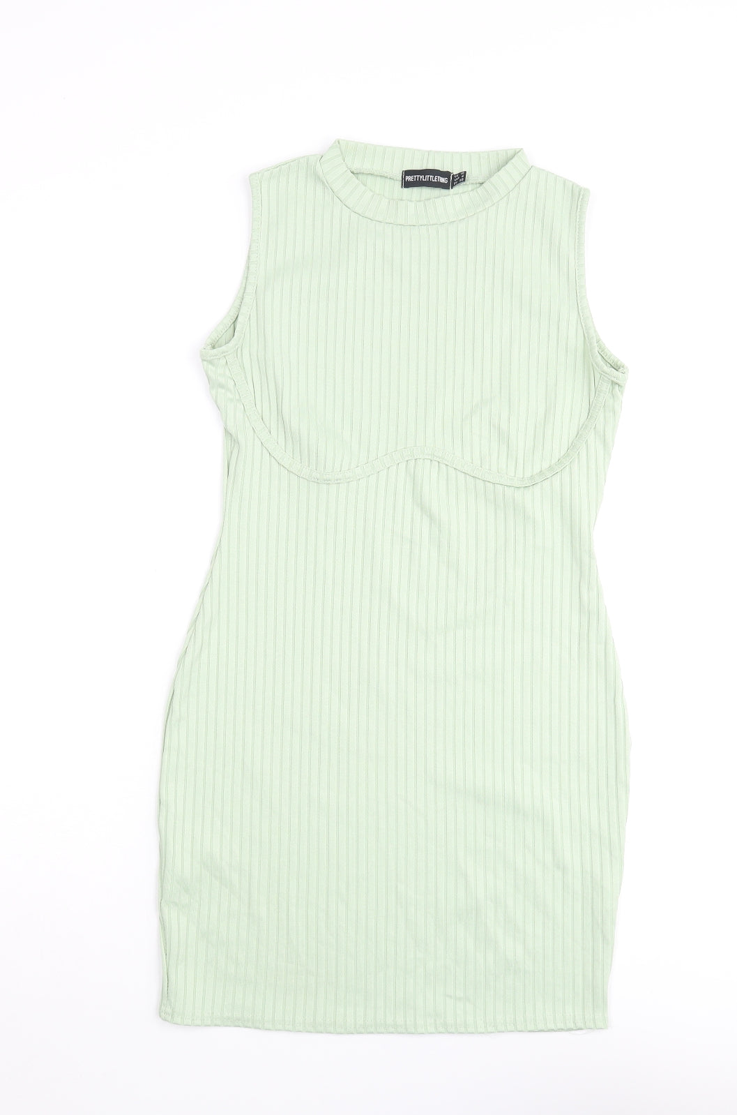 PRETTYLITTLETHING Womens Green Polyester Bodycon Size 10 Mock Neck Pullover - Ribbed